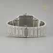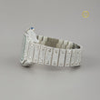 This exceptional timepiece redefines opulence and refinement, showcasing a breathtaking diamond-encrusted design from the case to the bracelet. Each brilliant-cut diamond is meticulously set, creating a radiant sparkle that exudes unmatched elegance. The pave dial, adorned with distinctive emerald green numerals, adds a vibrant touch of sophisticated contrast to the shimmering white brilliance.