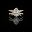 The Ivevar Luxury pear-shaped diamond ring is a breathtaking symbol of timeless elegance. Featuring a stunning pear-cut diamond at the center, flanked by sparkling round diamonds on both sides, this ring is crafted in gold with a unique split-shank design. Its luxurious craftsmanship and radiant accents make it the perfect choice for engagements or special celebrations.