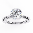 This captivating ring showcases a brilliant round-cut diamond set atop a uniquely designed twisted band, creating a perfect blend of elegance and modern artistry. The central diamond delivers exceptional sparkle, while the twisted band adds a touch of sophisticated charm and distinctive craftsmanship. Ideal for those seeking a piece that reflects luxury, timeless beauty, and individual style, this ring makes a stunning choice for an engagement, anniversary, or special celebration.
