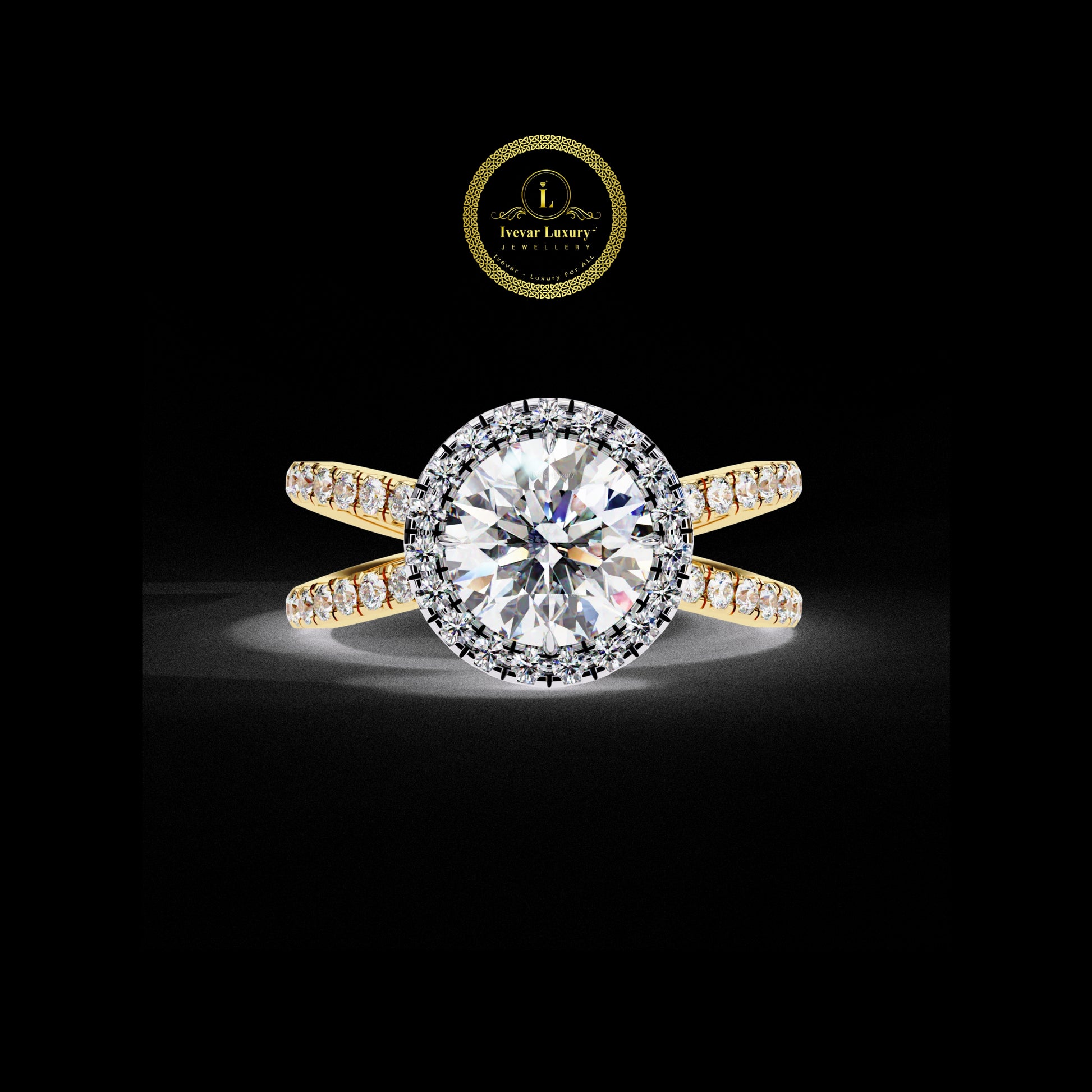 Elegant Round Cut Moissanite Diamond Engagement Ring Vintage Gold & Diamonds