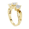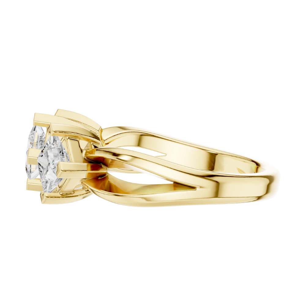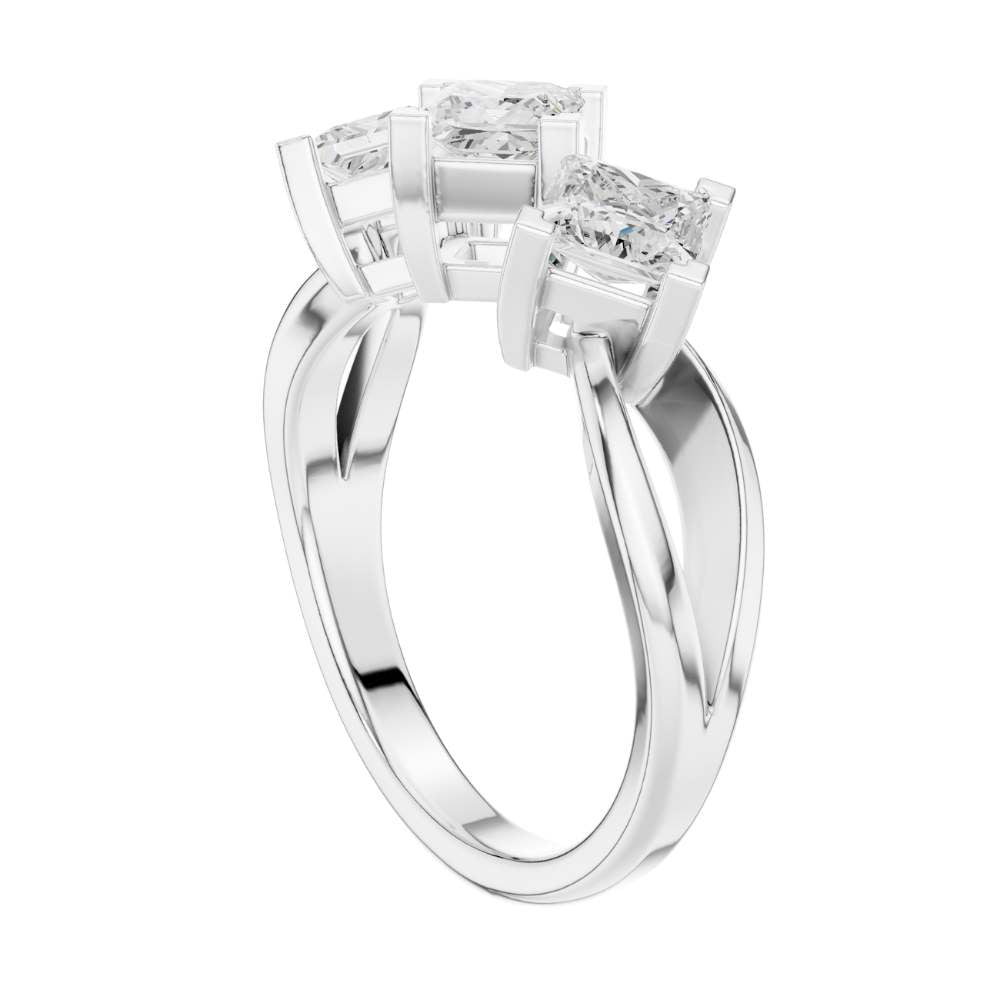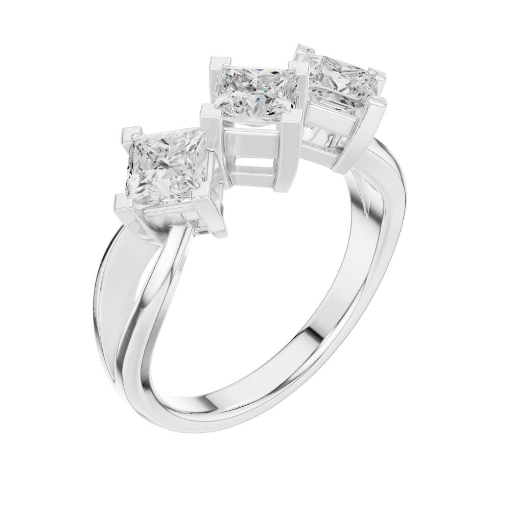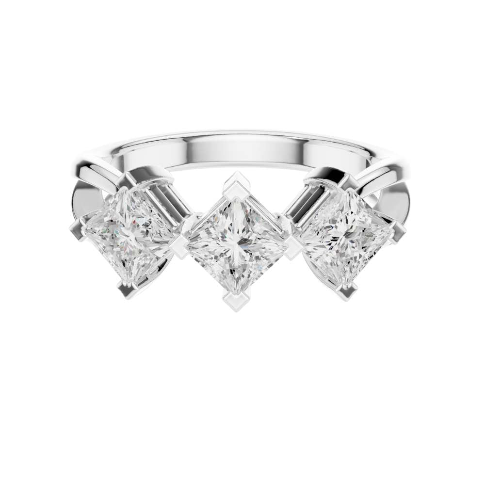 This elegant three-stone ring showcases trio of brilliant princess-cut diamonds, perfectly aligned to create a striking, symmetrical centerpiece. Set in polished gold, each diamond is secured in sleek prongs that highlight the clean lines and geometric beauty of the stones. The design blends modern minimalism with timeless sophistication, making it an ideal ring for anniversaries, milestone celebrations, or anyone who loves refined, contemporary luxury.
