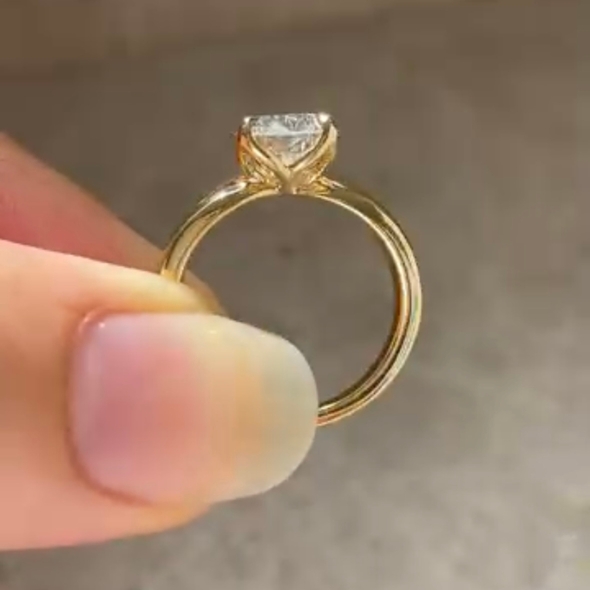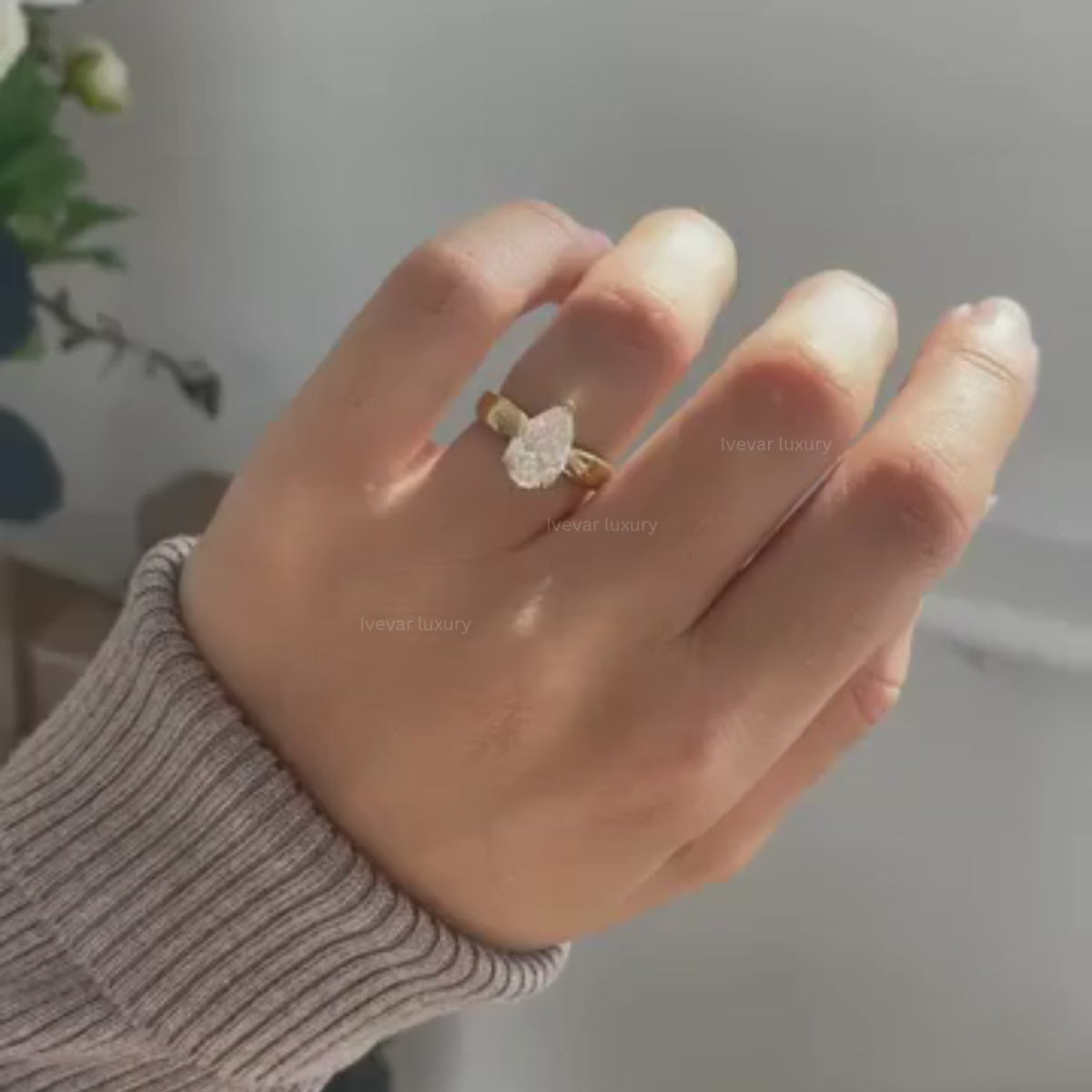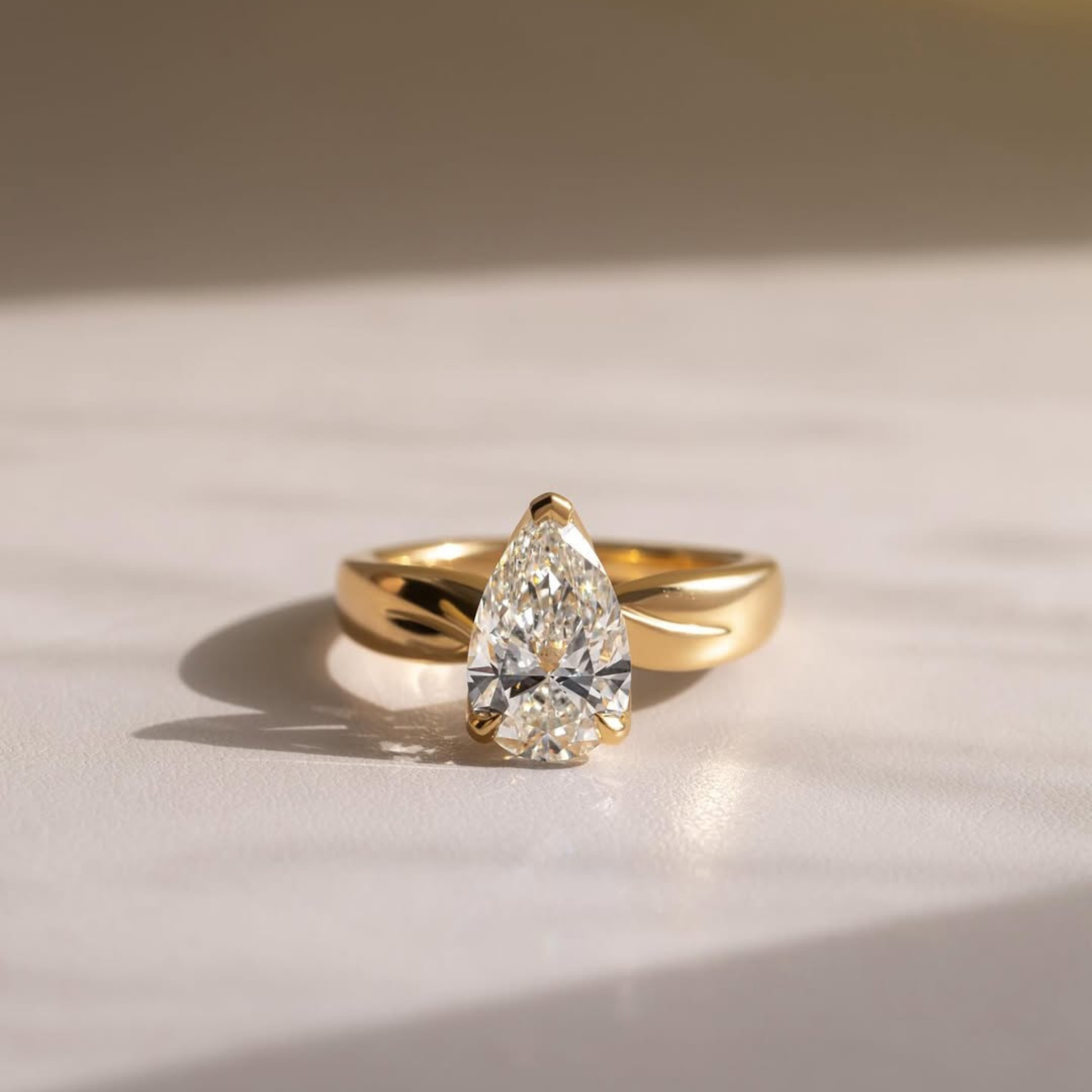 Gracefully sculpted and endlessly radiant, Elysian Pear celebrates the beauty of refined simplicity. At its heart rests a brilliant pear-cut diamond, meticulously set in a smooth, polished gold band that flows effortlessly around the finger. The soft taper of the stone draws the eye upward, symbolizing growth, love, and a future unfolding in light.Every detail is intentional—from the balanced proportions of the setting to the warmth of the embracing the diamond’s fire.
