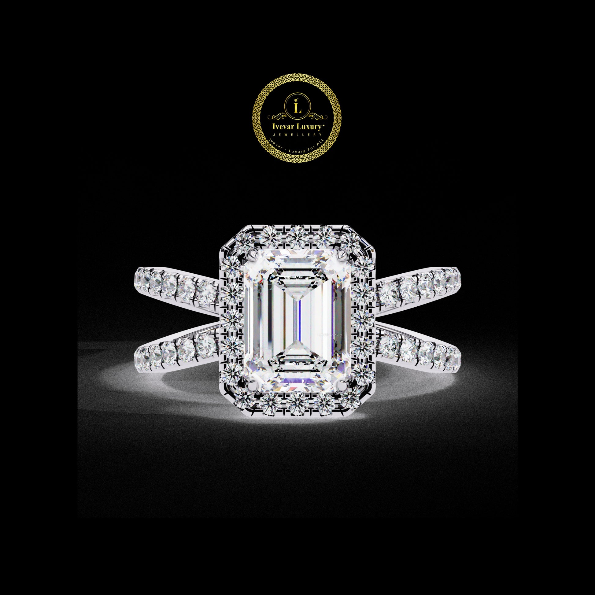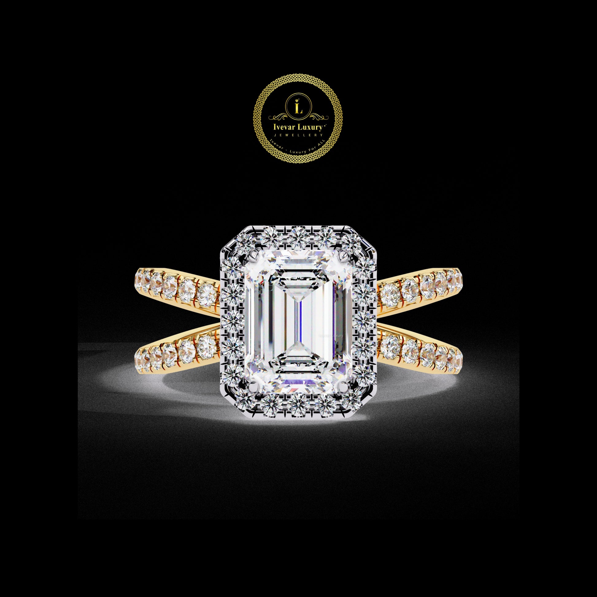 Emerald Cut Moissanite Diamond Ring Old World Charm by Ivevar