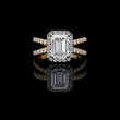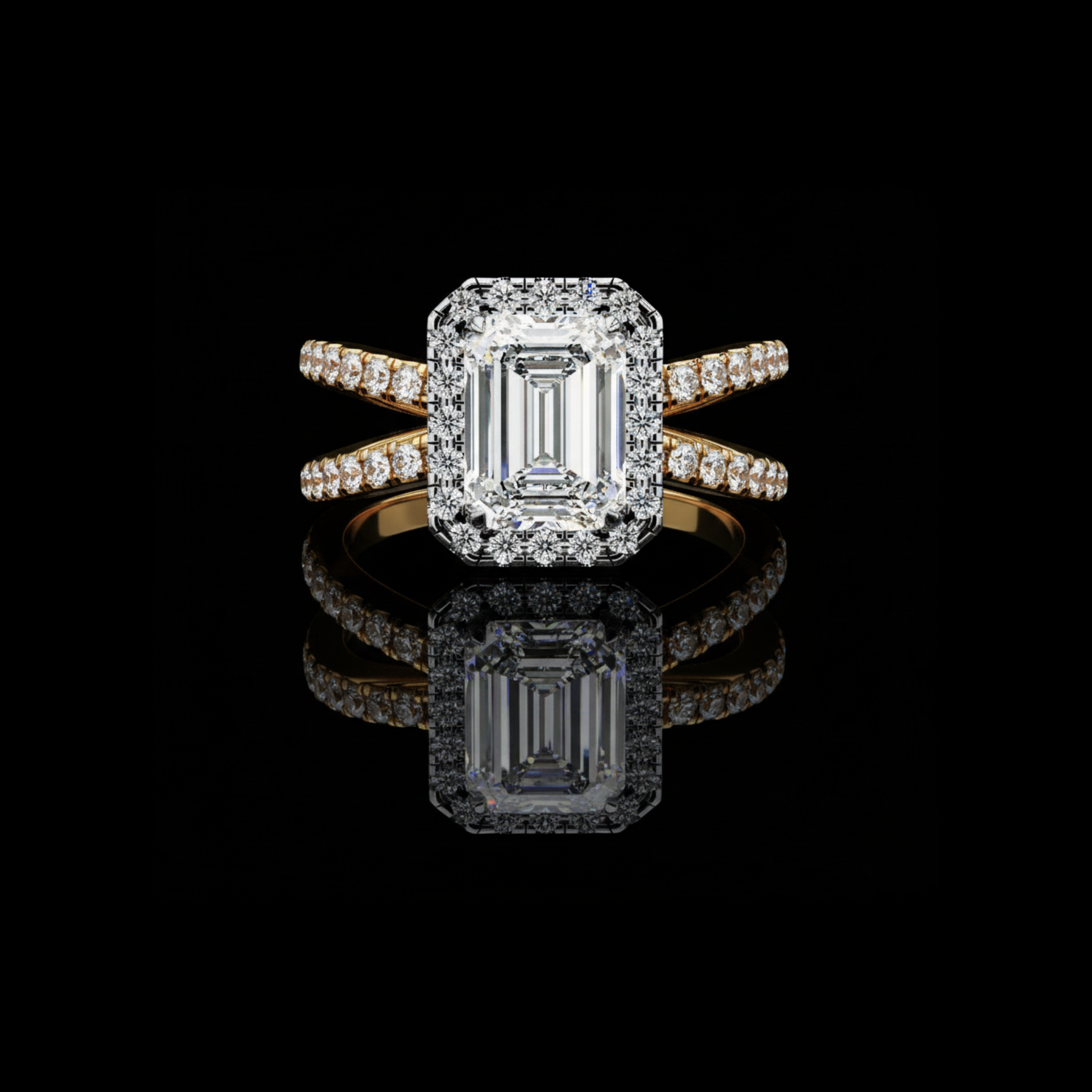 This breathtaking design from Ivevar Luxury features a brilliant emerald-cut center diamond, surrounded by a sparkling halo, and set upon a double pave band that radiates unmatched glamour. Crafted for those who adore bold luxury, high brilliance, and modern sophistication, this ring makes a stunning centerpiece for engagements, celebrations, or heirloom gifting.