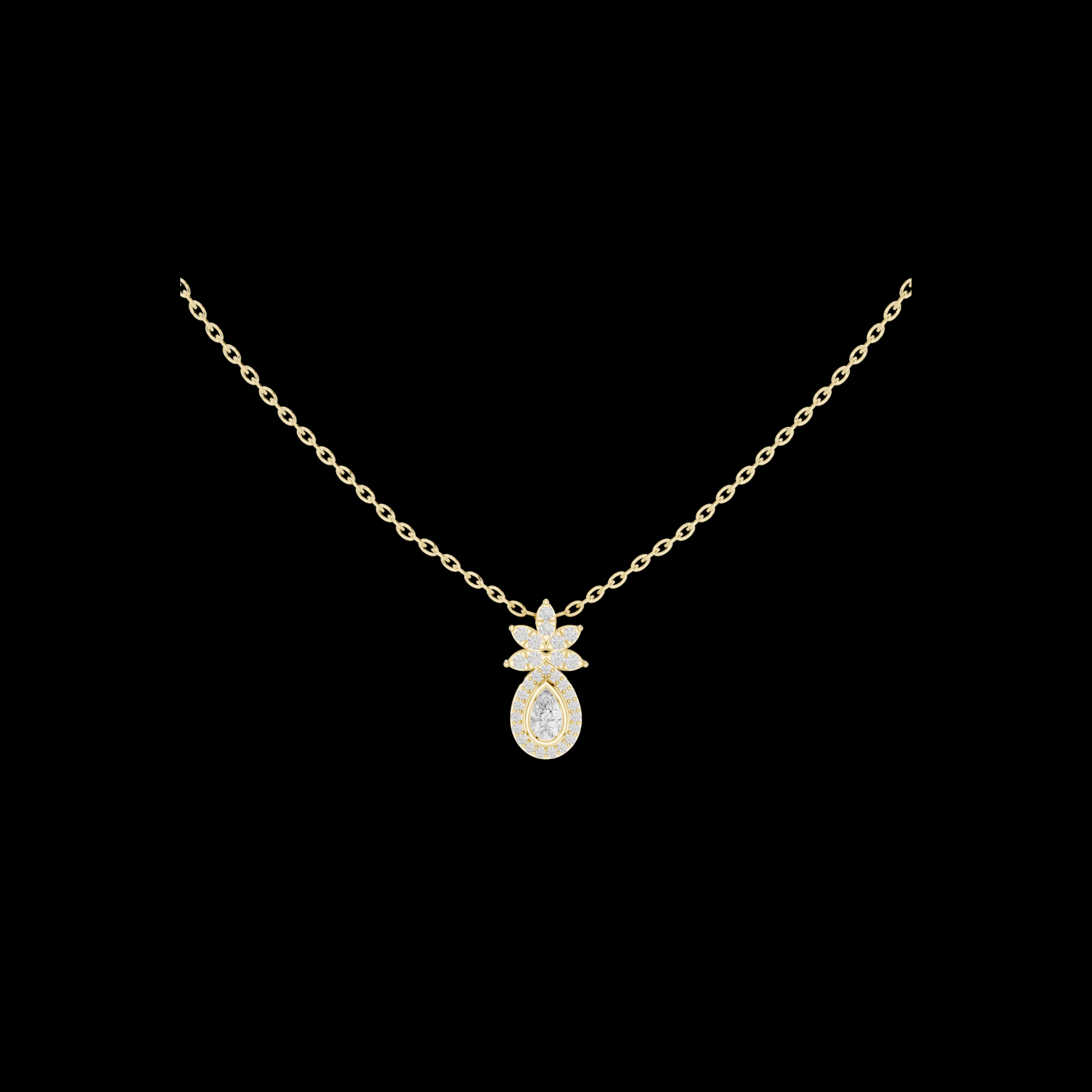 This exquisite pendant from IVEVAR LUXURY showcases a delicate floral motif paired with a sparkling teardrop diamond design. The petal-shaped diamond arrangement enhances brilliance, while the teardrop centerpiece adds timeless elegance and grace. Designed for both everyday luxury and special occasions, it pairs beautifully with formal, bridal, or minimalist looks. A perfect choice for those who appreciate refined craftsmanship, feminine design, and understated luxury.