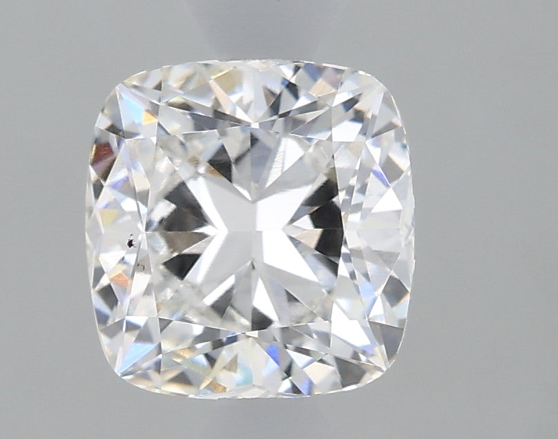 cushion-cut moissanite in a dreamy cyan blue hue, blending vintage charm with modern brilliance. Its softly rounded corners and radiant facets create a delicate dance of light, making it a perfect fusion of sophistication and allure.