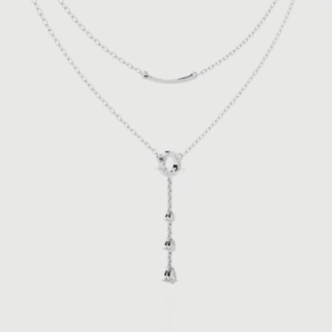 This sophisticated double layer gold necklace features a harmonious blend of modern and classic design. The upper layer showcases a sleek, curved bar adorned with Sparkling Round Stones, adding a refined touch of brilliance. The lower layer highlights a circular diamond studded centerpiece from which a delicate drop chain elegantly descends, accented with a series of Shimmering Pear Cut Gems. Crafted with precision and luxury, this piece from Ivevar Luxury exudes timeless glamour—perfect for elevating both everyday and evening ensembles.
