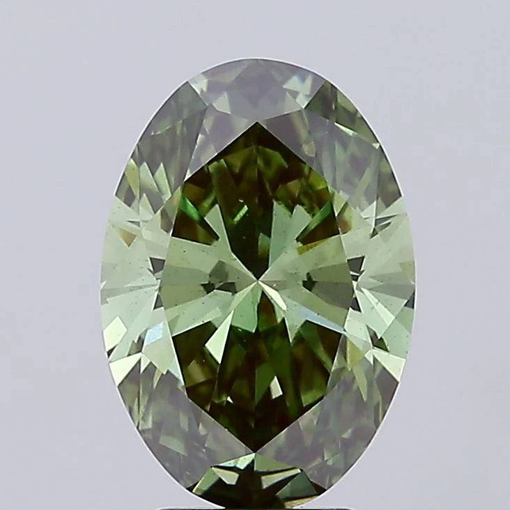 Excellent Of 3.77 CT Oval Shape Fancy Vivid Green Color VS2 Clarity Moissanite Diamond For Wide Blue Warm Shadows
