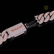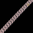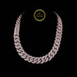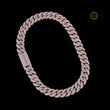 This is a Cuban link chain, a classic style known for its bold, thick, and tightly interlocking oval links that lie flat. It is a fully "iced-out" piece, meaning the surface of the links is paved with numerous stones to create maximum sparkle.