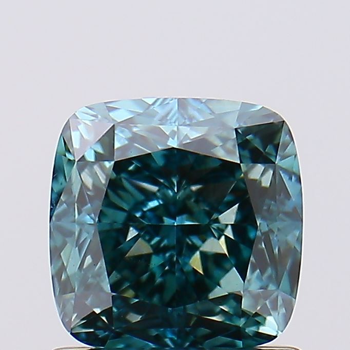 Experience Luxury 1.10 CT Cushion Shape Fancy Vivid Bluish Green Color VS1 Clarity Moissanite Diamond For her Ring
