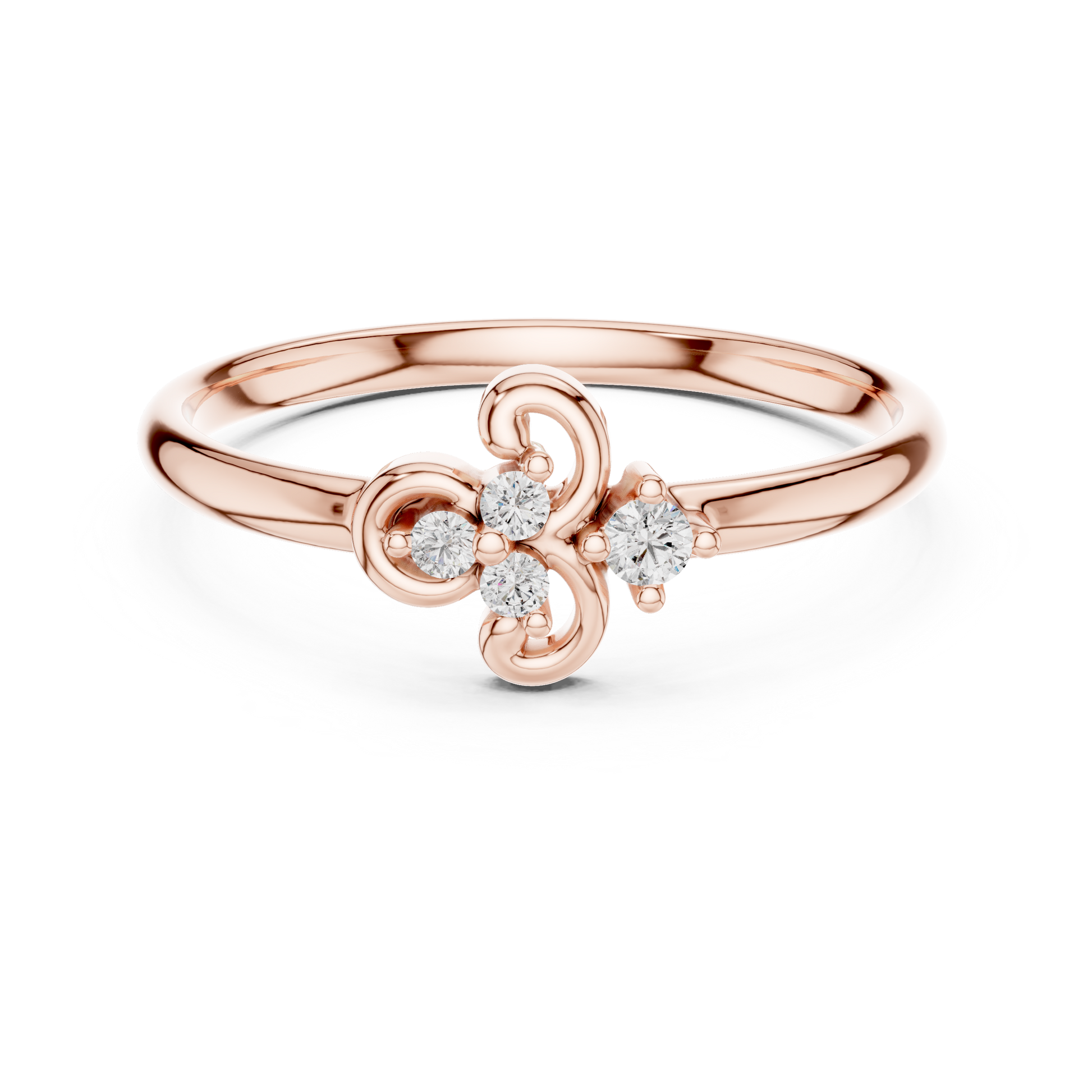 This elegant ring features a delicate gold band adorned with a graceful, floral-inspired motif set with sparkling round diamonds, creating a refined balance of artistry and brilliance. Its intricate loops and petite clustered stones evoke a sense of timeless romance, while the polished gold adds warmth and sophistication. Perfect as a meaningful gift or a subtle everyday luxury, this ring offers a blend of classic charm and modern finesse that makes it a standout piece in any jewelry collection.