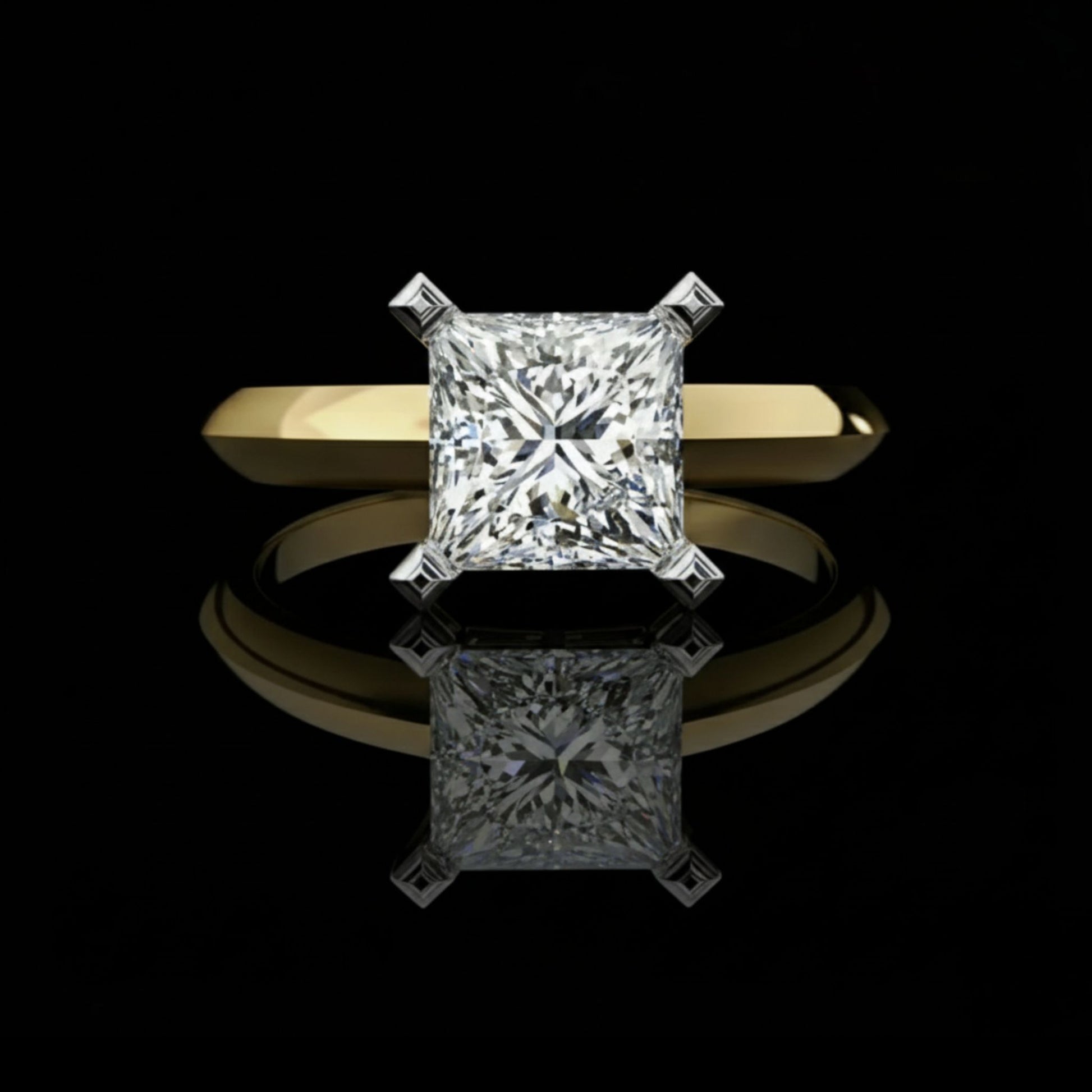 This classic solitaire ring showcases a brilliant Princess -cut diamond set in a sleek band. The diamond is securely held by four prongs, allowing its natural sparkle and brilliance to captivate from every angle. The elegant design and high-quality craftsmanship make this ring a perfect symbol of love and commitment. Whether for an engagement or a special occasion, this piece combines luxury, simplicity, and timeless beauty.