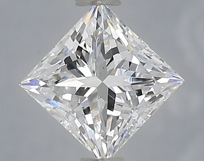 The band is adorned with small, closely set stones, creating a continuous sparkle that complements the central Princess Cut Moissanite. This style offers a modern and glamorous look.