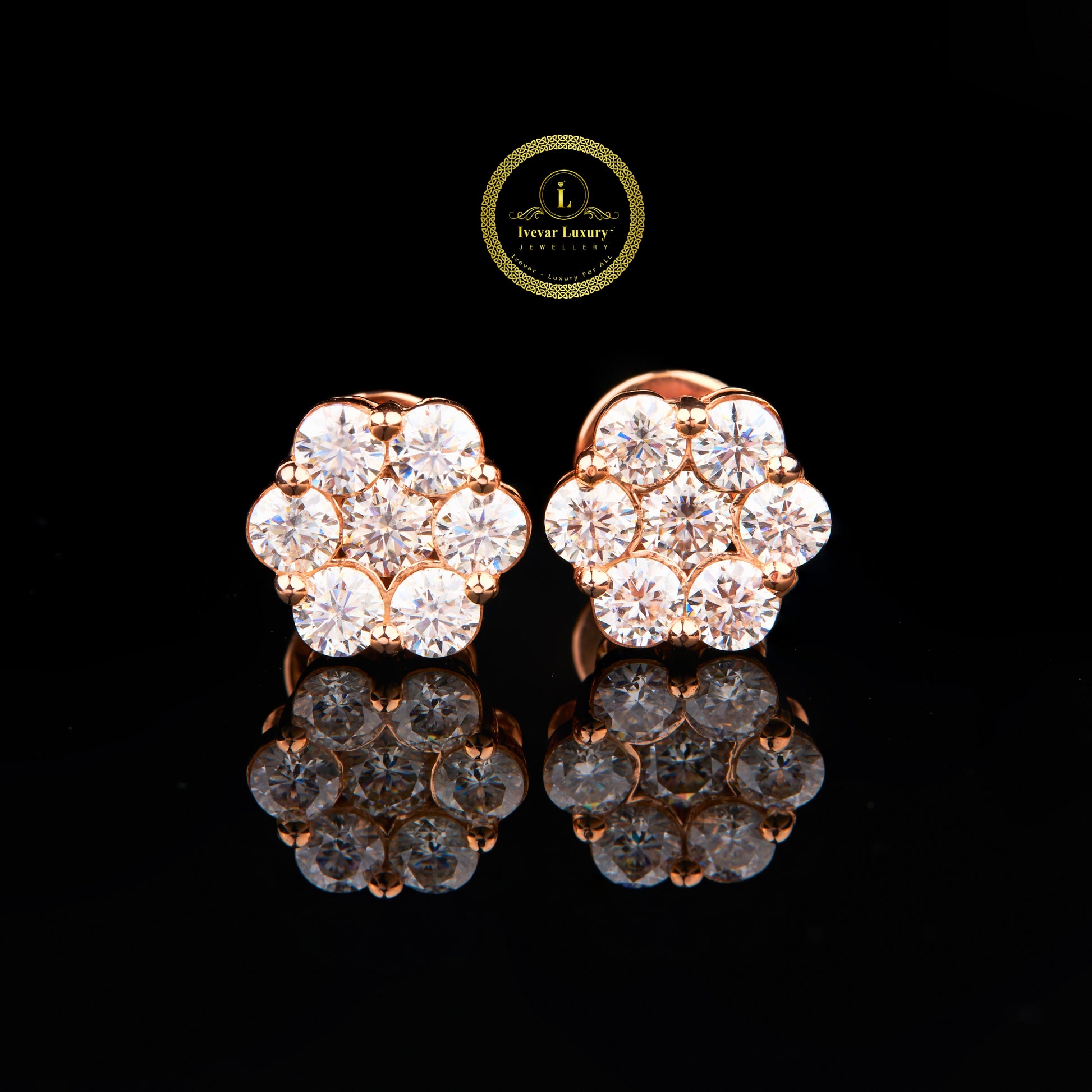 Floral Cluster Round Diamond Stud Earrings in Rose Gold | Elegant Handmade Custom Jewelry by Ivevar