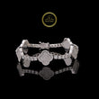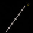 This is a sparkling tennis-style bracelet featuring a row of linked clear stones (moissanite diamonds) punctuated by larger, central quatrefoil or clover motifs.