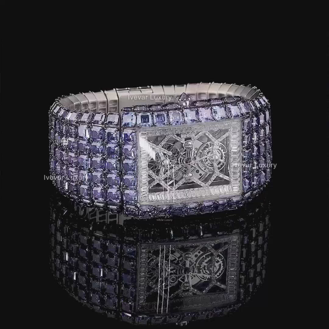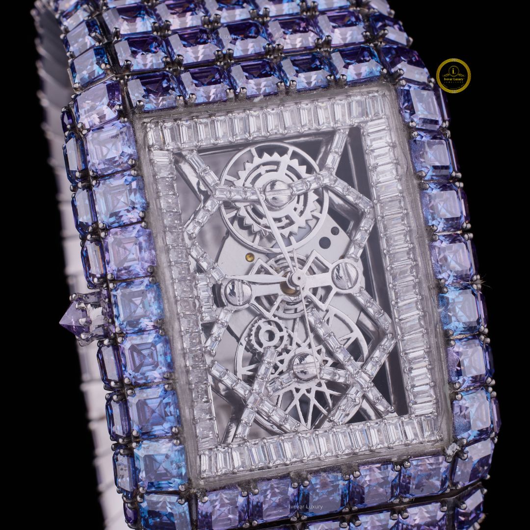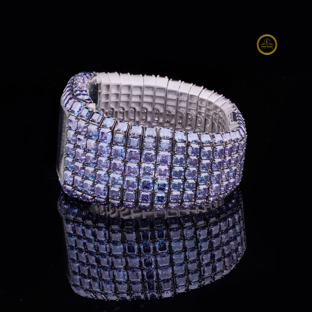 Experience timeless sophistication with the Baguette Dial & Asscher Cut Blue Diamond Watch by Ivevar Luxury — a masterpiece crafted for those who desire unmatched brilliance and bold individuality. Each princess-cut diamond reflects light with mesmerizing fire, while the subtle blue hue adds a royal touch of exclusivity. Set in a sleek white gold frame, this fully iced-out timepiece captures both elegance and modern craftsmanship. Designed to stand out, it redefines luxury with its precise detailing and confident aura. Whether paired with streetwear or formal attire, this watch makes every moment a statement of power, prestige, and perfection.