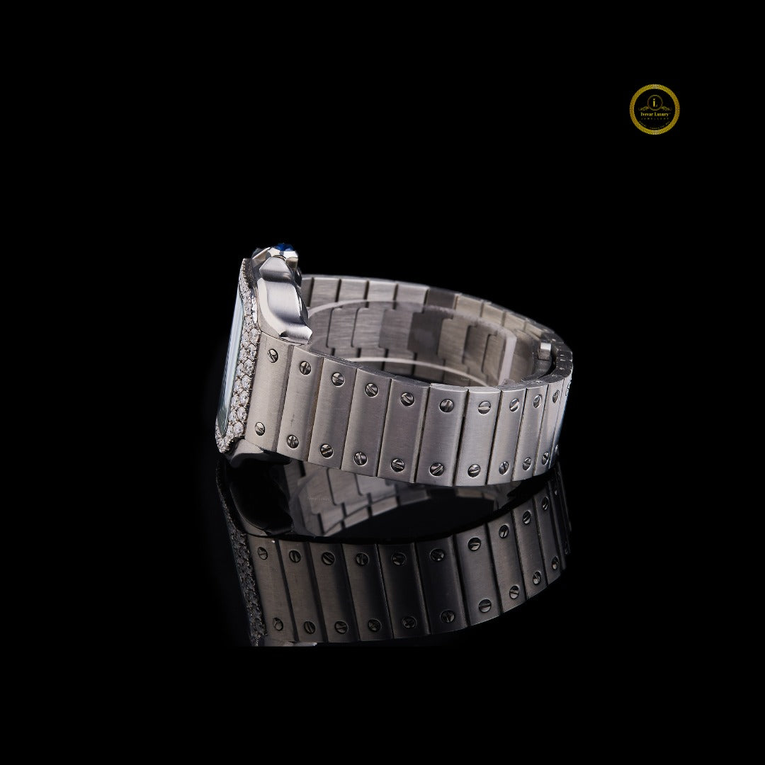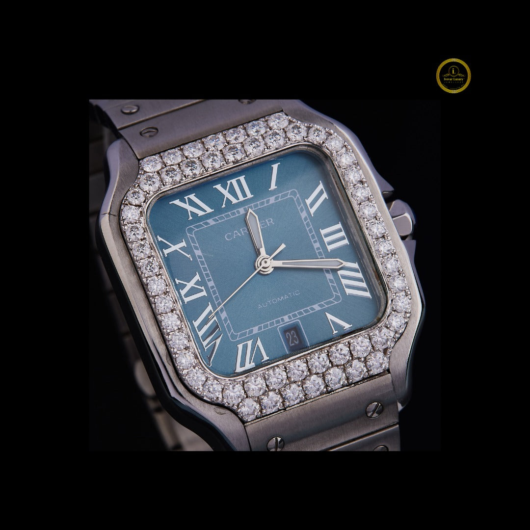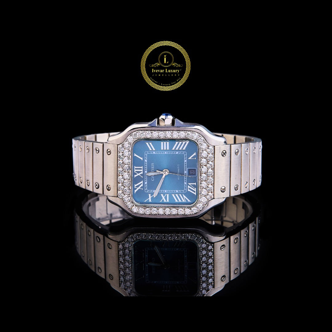 Custom Diamond Bezel Wristwatch with Blue Roman Dial By Ivevar