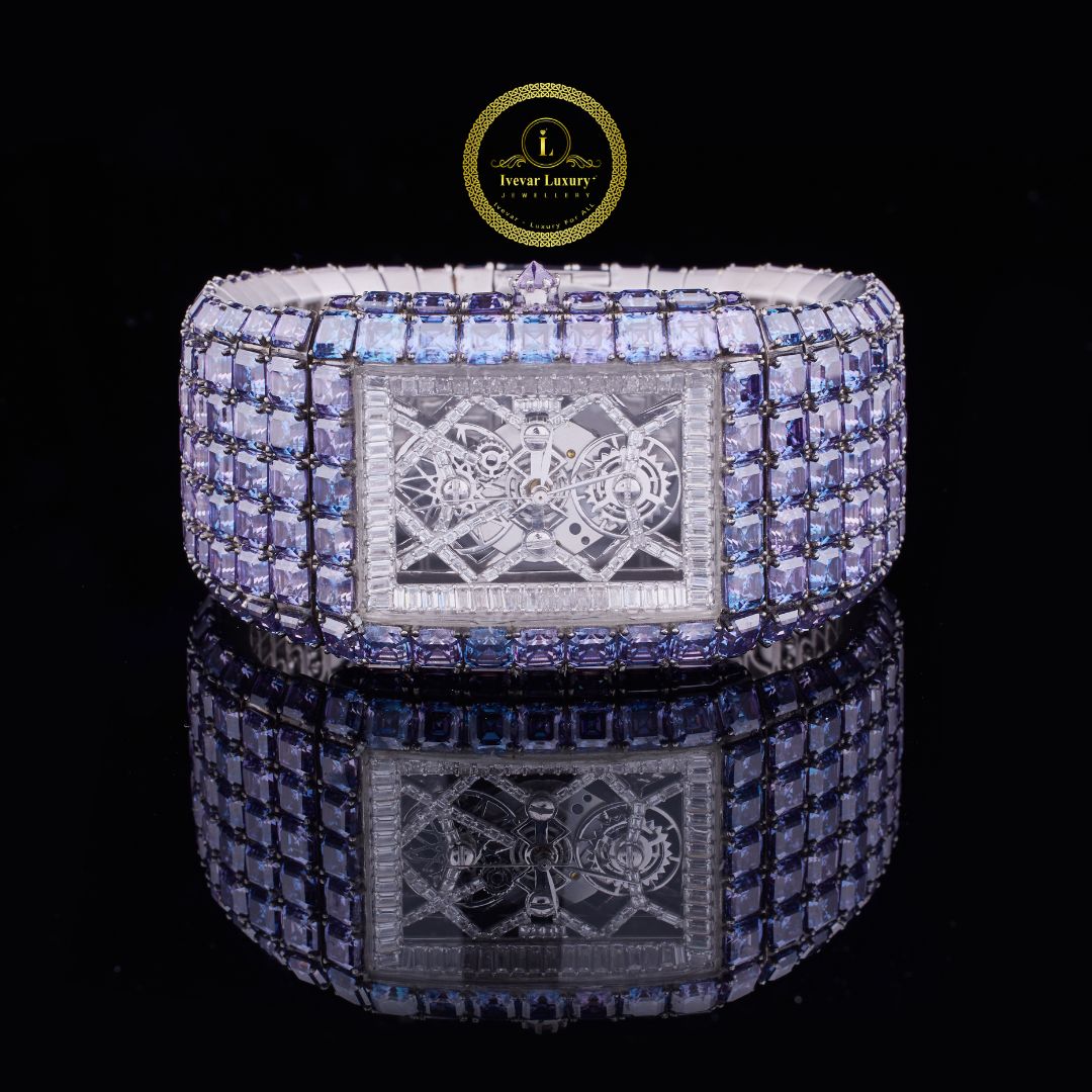Fully Iced-Out Luxury Skeleton Watch – Blue Lab Diamonds By IVEVAR