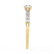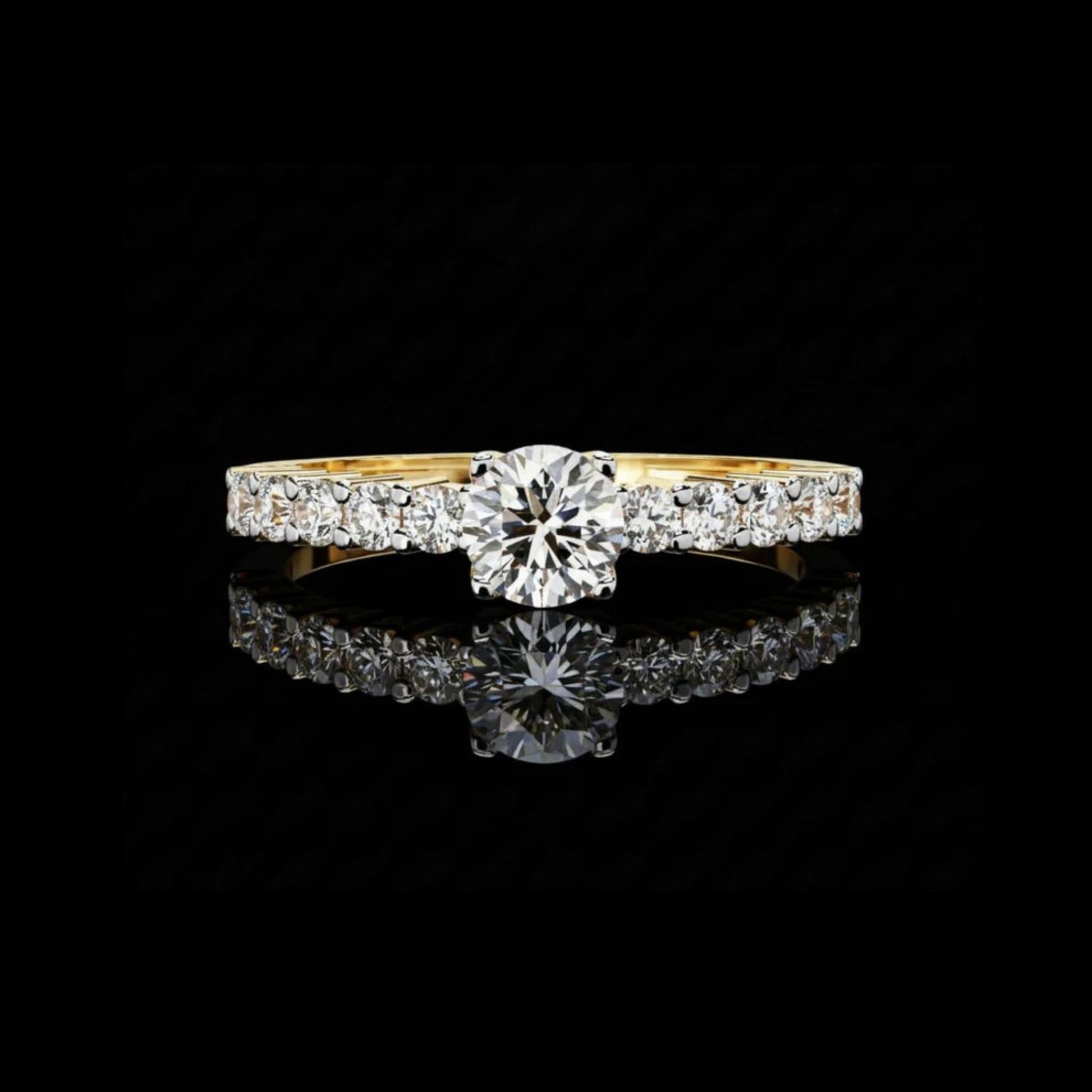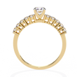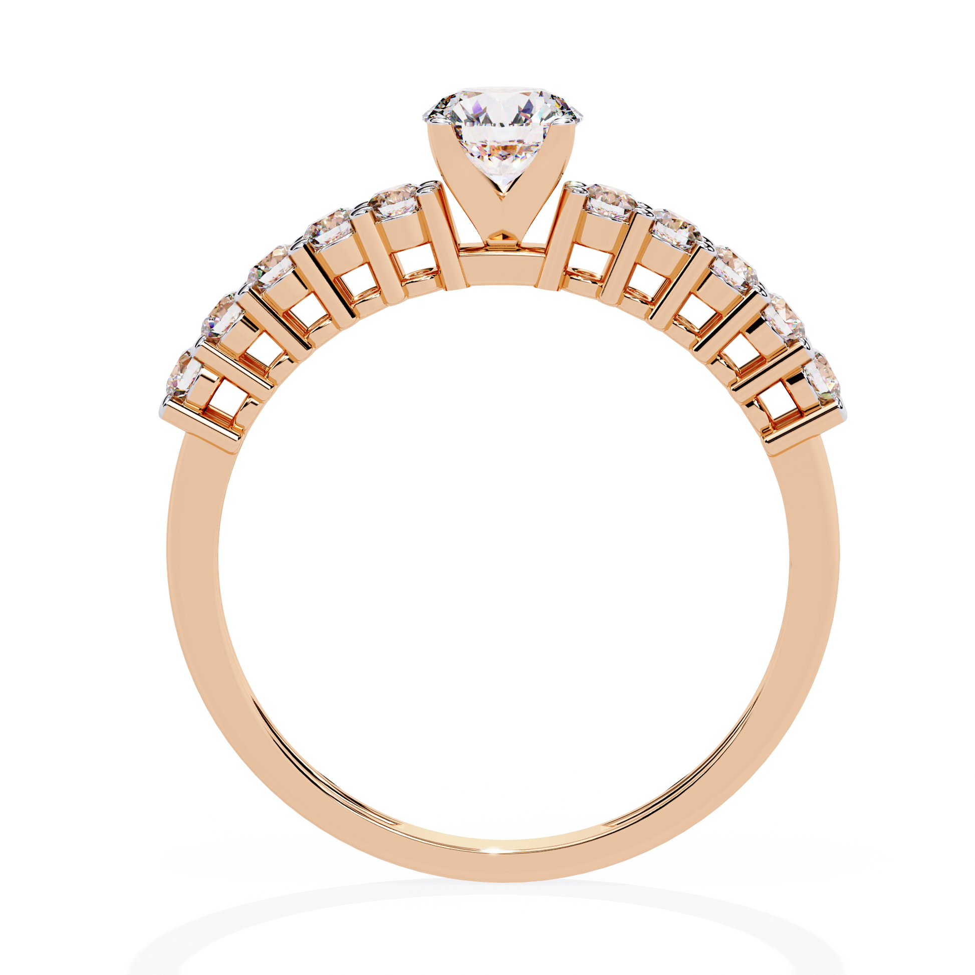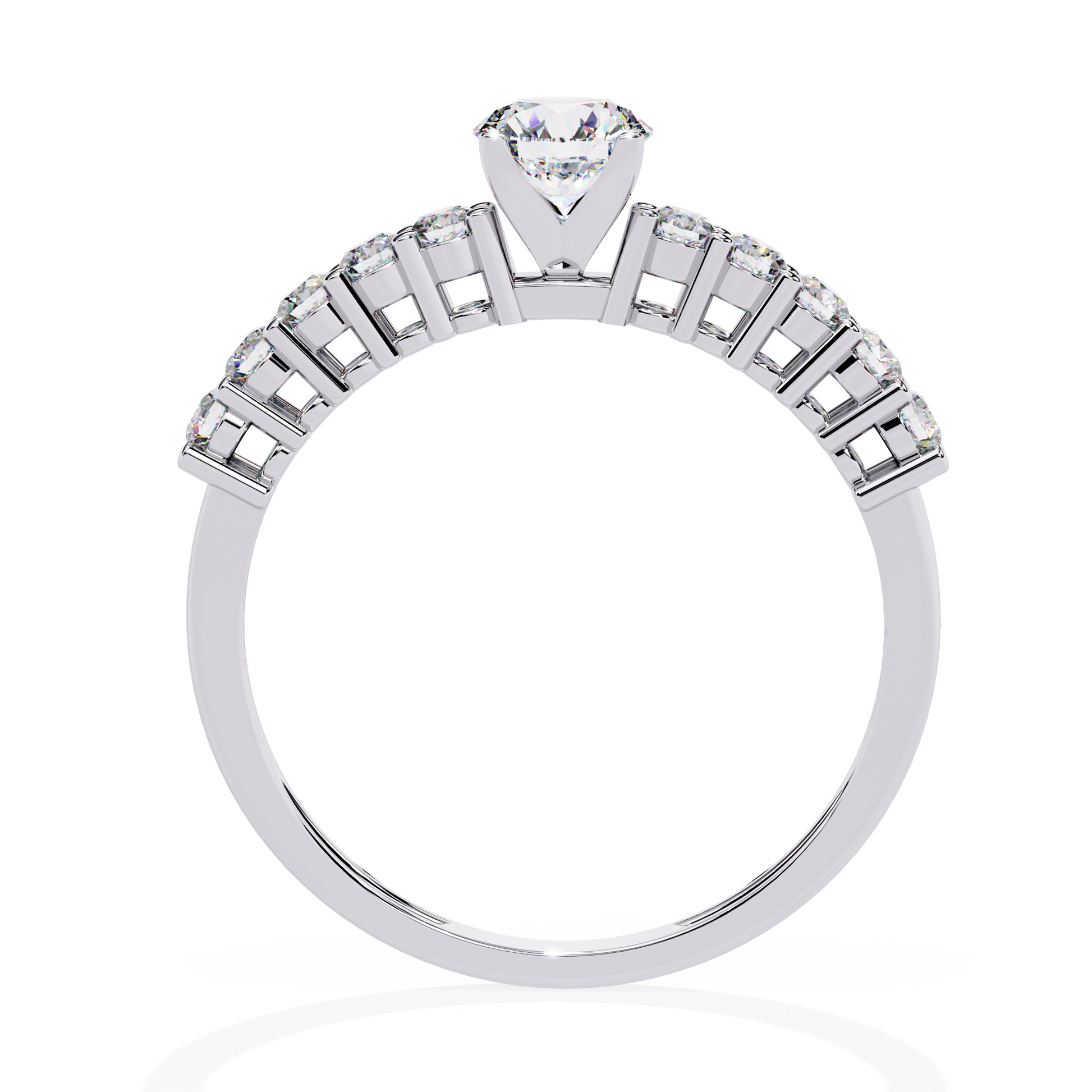 This stunning engagement ring features a brilliant round-cut diamond at its center, flawlessly complemented by a row of sparkling side stones that enhance its natural radiance. Set in a luxurious gold band, the design blends timeless sophistication with modern charm. Perfect for celebrating love, commitment, and life’s most precious moments.