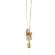 This stunning necklace features an Exquisite Bow Design, gracefully crafted in gold and adorned with Brilliant Round Cut Diamonds that shimmer with every movement. The bow’s elegant loops are intricately paved with sparkling stones, while a teardrop-shaped round diamond dangles delicately beneath, adding a touch of sophistication and allure. The Ivevar's necklace is suspended from a fine gold chain, creating a luxurious and feminine statement piece perfect for special occasions or adding glamour to everyday wear.