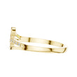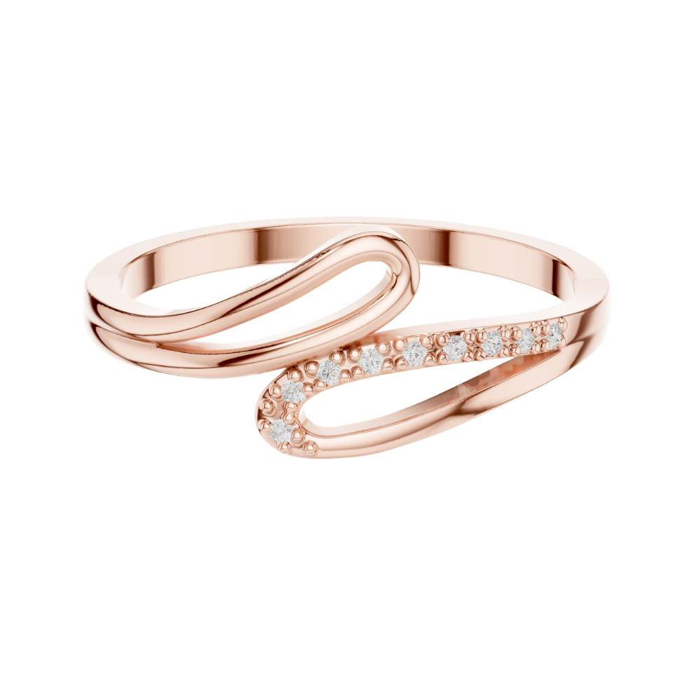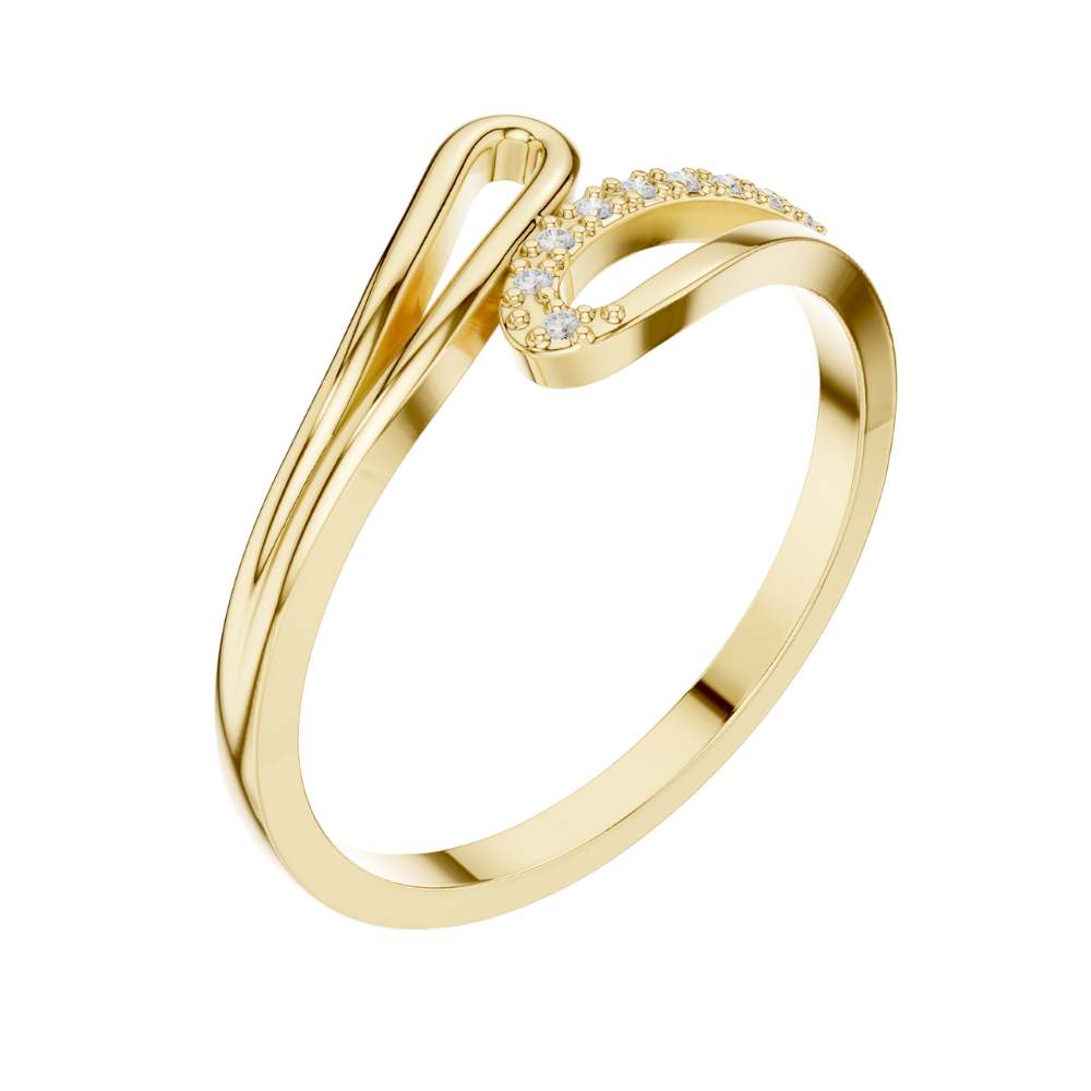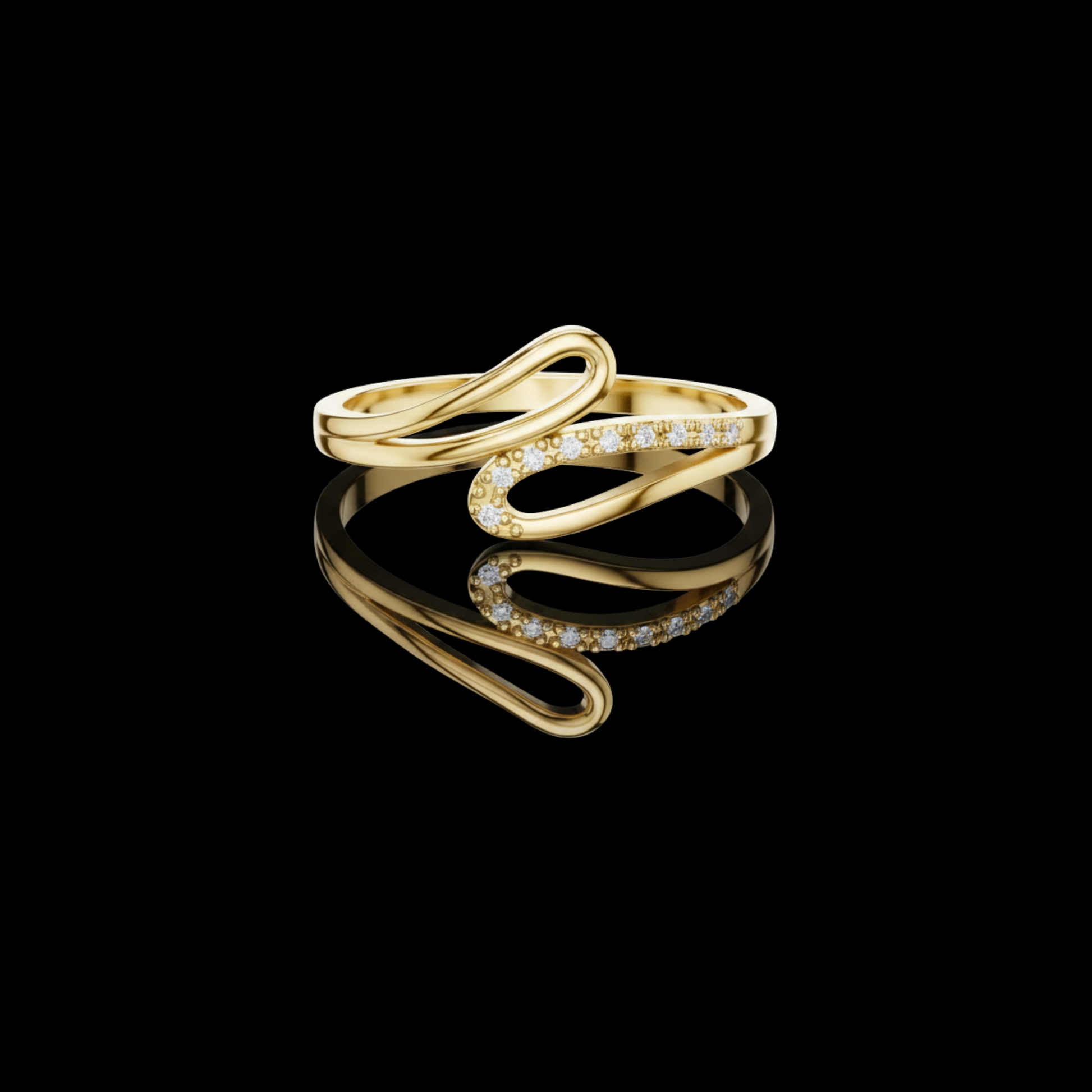 This elegant ring showcases a graceful, flowing design in polished gold, featuring a delicate swirl motif that wraps gently around the finger. One side of the swirl is adorned with a row of small, sparkling pavé diamonds, adding subtle shimmer and refined detail. The open, airy structure of the band creates a light and modern aesthetic, making this piece a versatile and sophisticated accessory for everyday wear or special occasions by Ivevar.