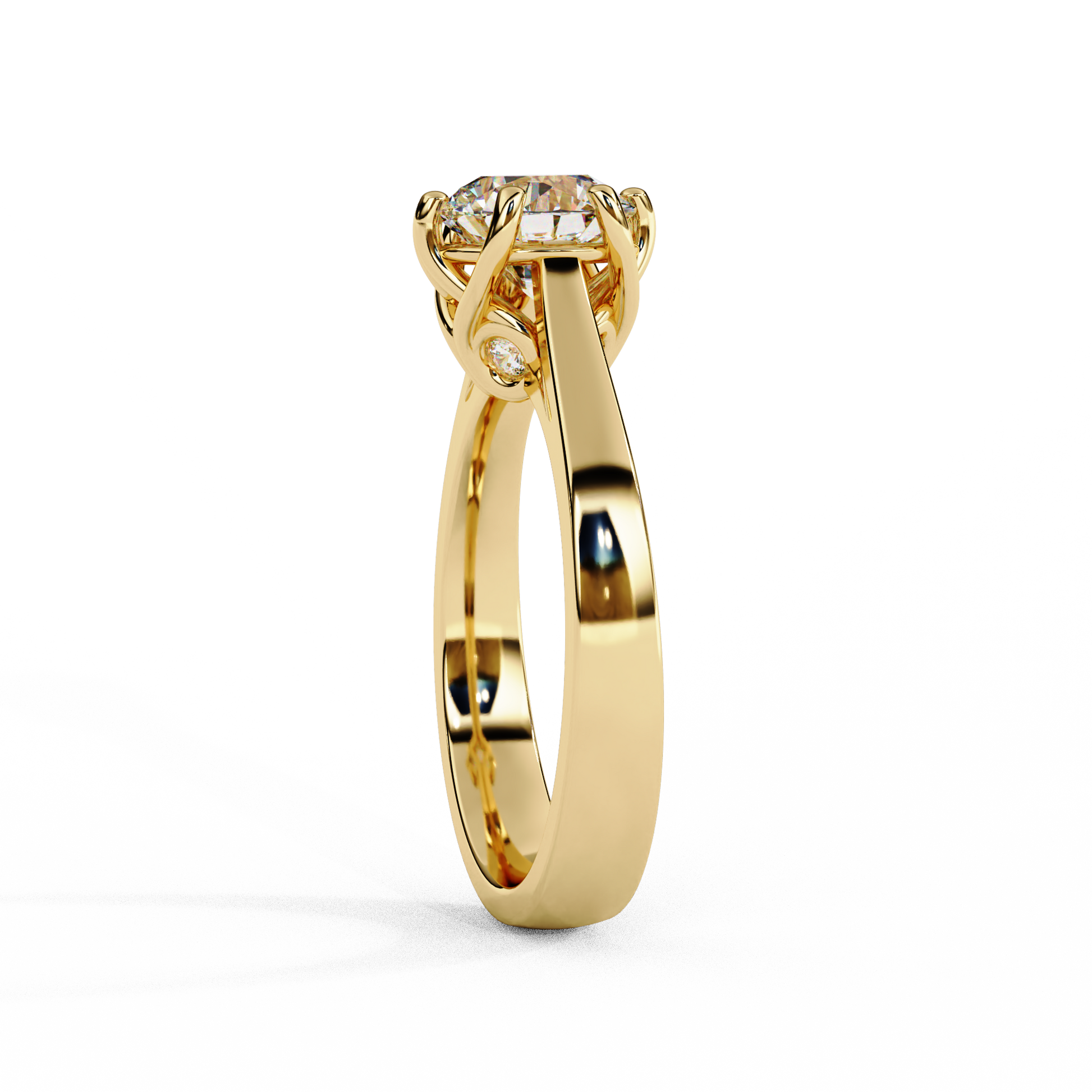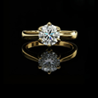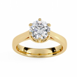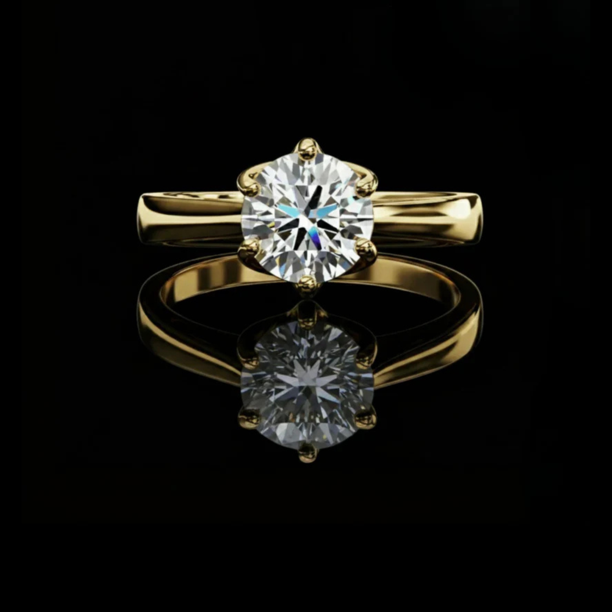 This elegant ring features a brilliant round-cut diamond held securely in a six-prong floral-inspired setting, crafted from lustrous gold. The design highlights the stone’s exceptional sparkle, while the smooth, polished band adds a touch of timeless sophistication. Perfect as an engagement ring or a meaningful gift, this piece blends classic beauty with modern refinement.