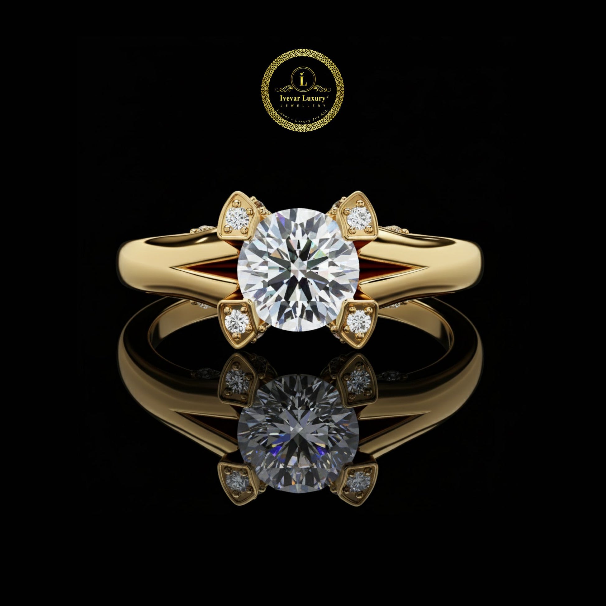 0.88 CT Handcrafted Round Cut Diamond Ring Vintage Inspired Gold Setting By Ivevar