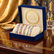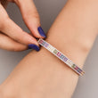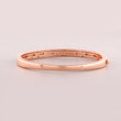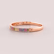 The bracelet is set in warm rose gold, which beautifully complements the hues of the colored stones. A delicate border of pave-set white diamonds frames the top and bottom edges of the double rainbow row, enhancing the sparkle and defining the colorful centerpiece. The combination of the double rows of color and the diamond halo makes this a richly textured and luxurious statement piece.