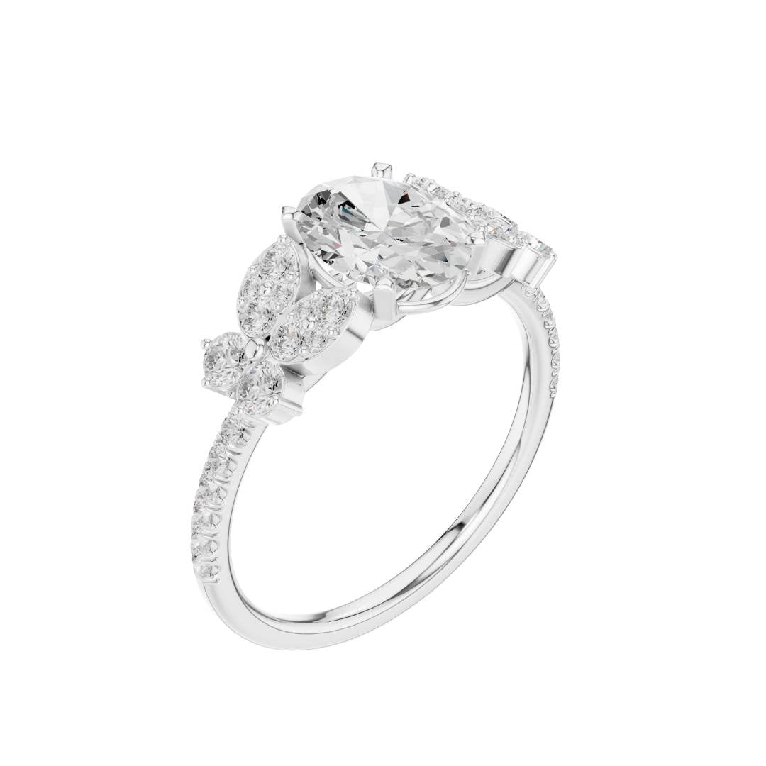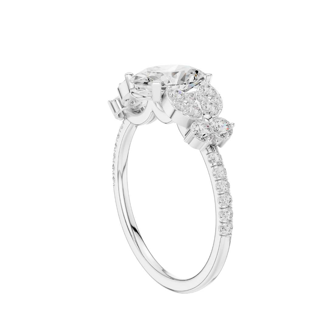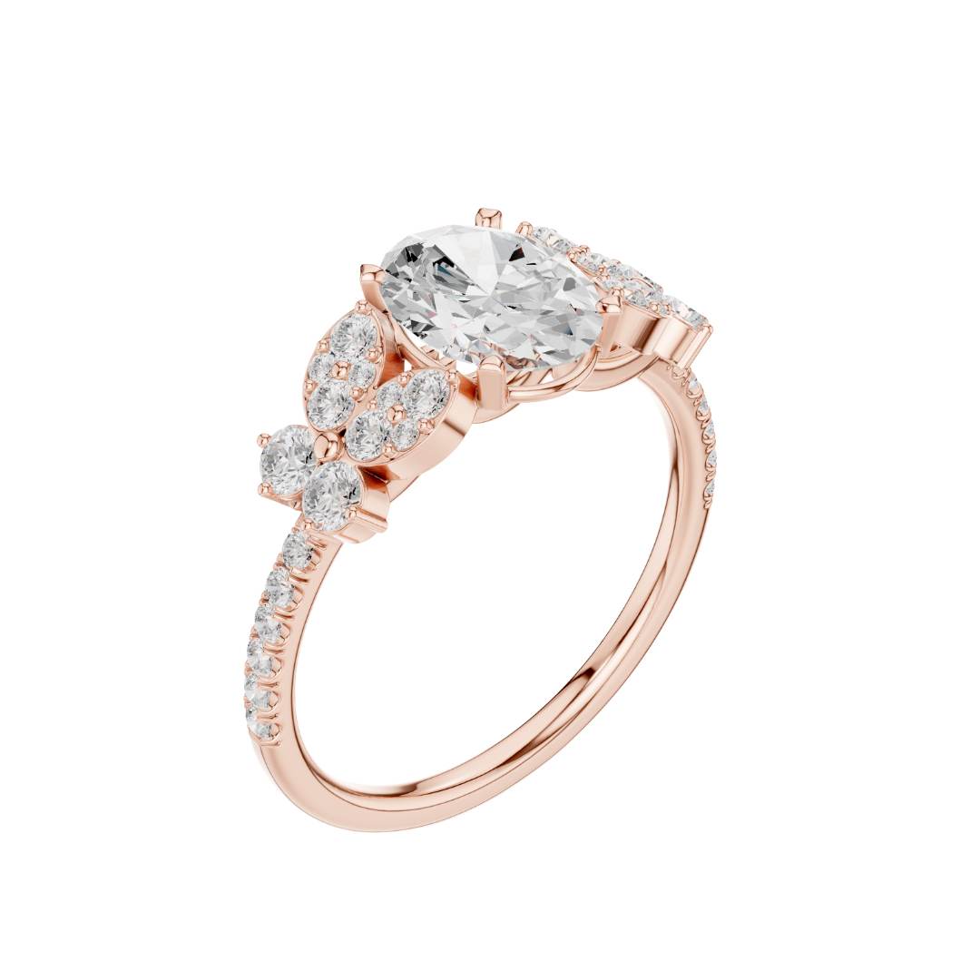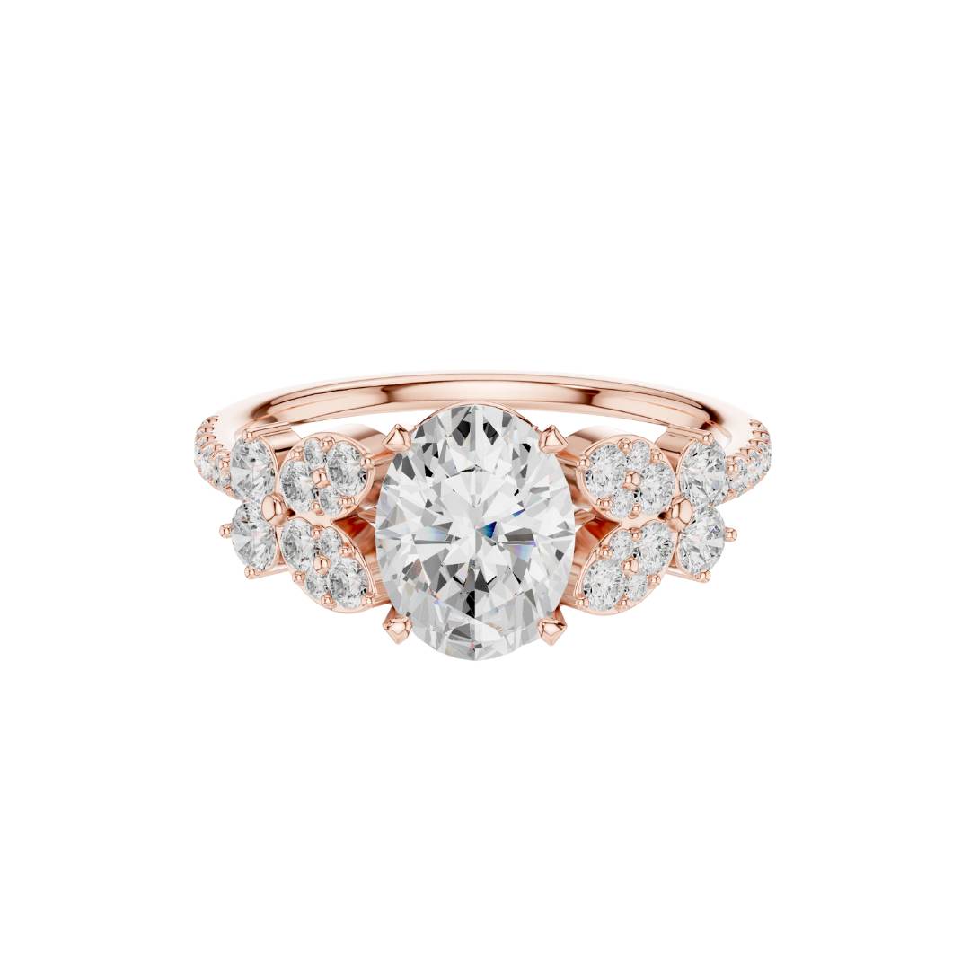 1.00 CT Harmony Oval Cut Lab Grown Diamond Ring with Floral Diamond Cluster Accents