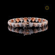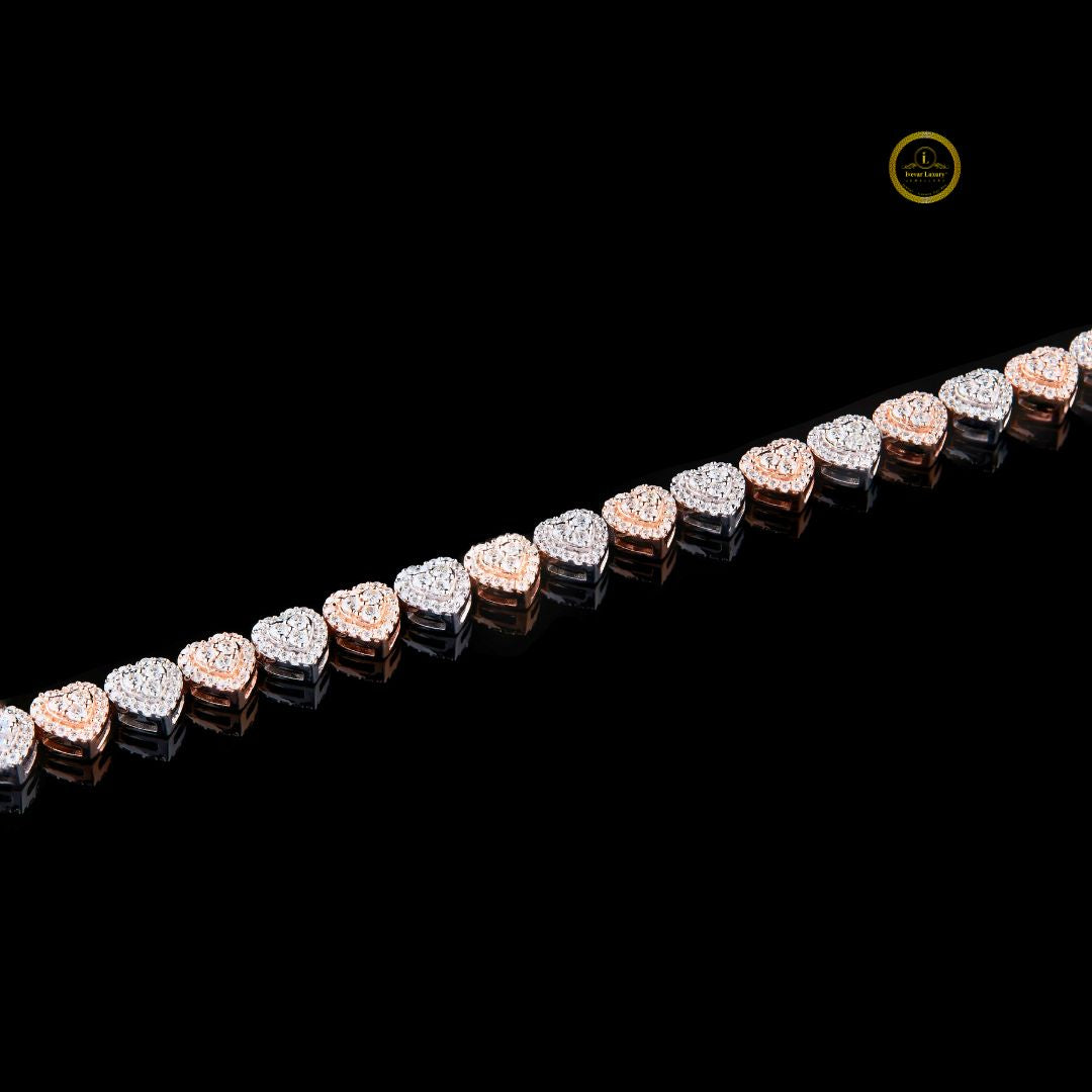 This is a stunning moissanite diamond tennis bracelet featuring a distinctive heart-shaped link design. It showcases an alternating pattern of rose gold-toned and silver-toned heart clusters, with each heart meticulously paved with brilliant moissanite stones, giving it a high-carat, diamond-look brilliance. The two-tone metal construction adds visual depth and modern appeal. The bracelet appears to have a secure box clasp closure. It's an elegant, luxurious piece, perfect as a romantic gift or a statement accessory for special occasions. The "Ivevar Luxury" branding suggests a focus on premium quality and design.