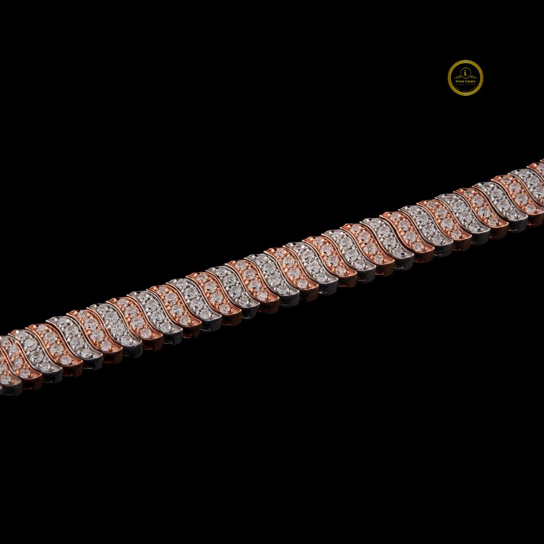 This is a striking Moissanite Diamond Bracelet, featuring a multi-row, wave-like design. It appears to be a tennis-style bracelet with alternating rows of stones set in what looks like rose-gold and silver-tone metals, creating a distinctive two-tone effect.