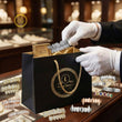 These luxurious dental caps feature a complete top and bottom set, distinguishing them from the previous design. The most notable feature is the use of baguette-cut Moissanite stones, which are rectangular and set in straight, horizontal rows across each tooth. This setting style, known as an invisible or channel setting, minimizes the visible metal prongs, allowing the stones to sit flush and create an uninterrupted, mirror-like surface of brilliance.