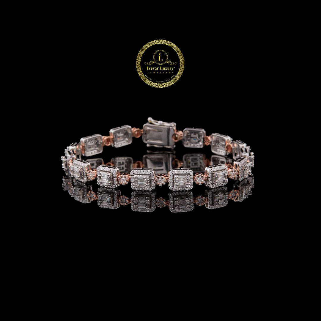 Iced Out Tennis Bracelet 925 Silver with VVS1 Lab-Grown Baguette Diamonds by Ivevar