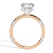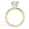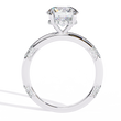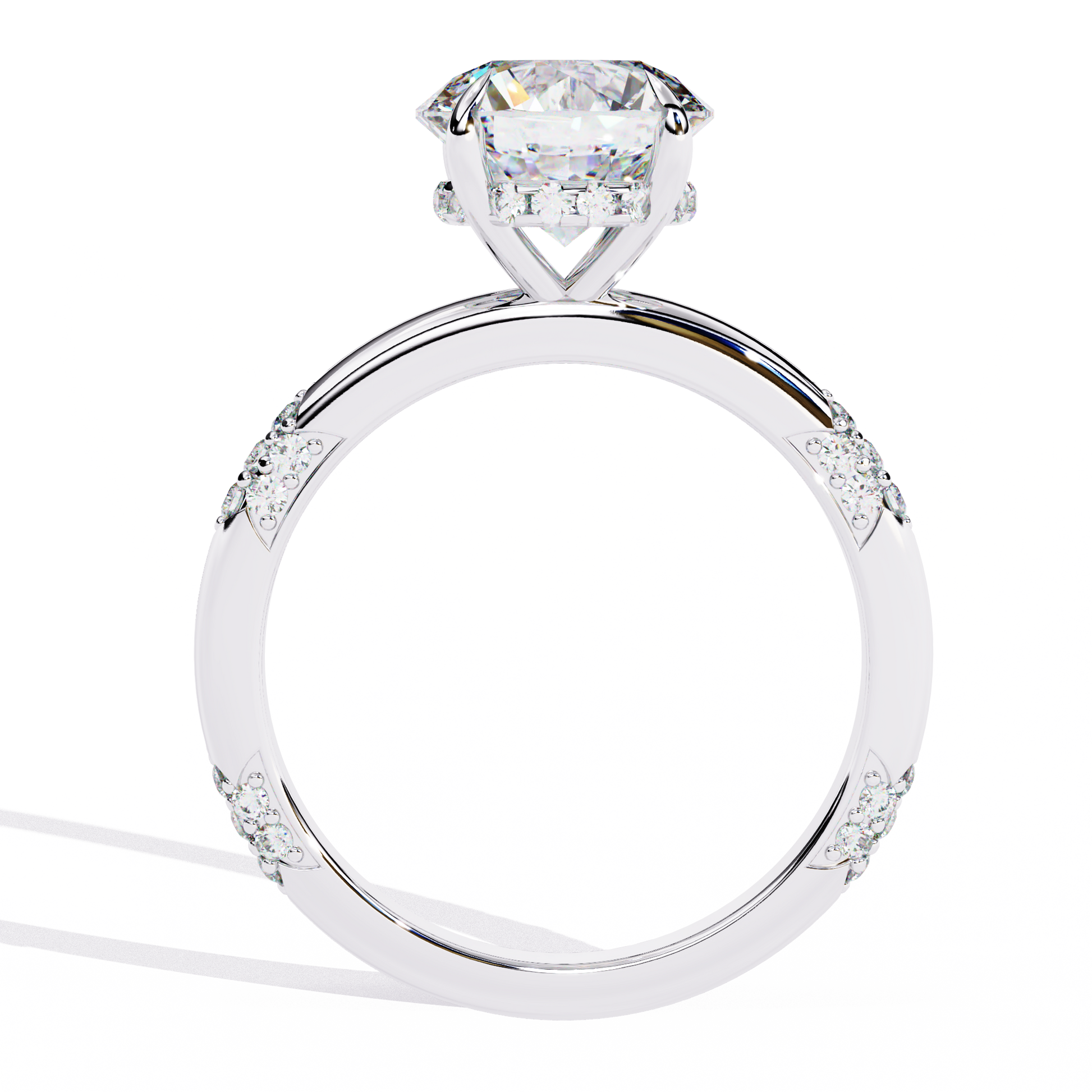 This exclusive engagement ring is designed for those who seek perfection. At its center lies a magnificent round-cut diamond, carefully selected for its brilliance and clarity, while subtle diamond accents along the band add a touch of delicate sparkle. The exceptional craftsmanship and luxurious design make this ring an unforgettable symbol of true love and eternal elegance, a piece that will be cherished for generations.