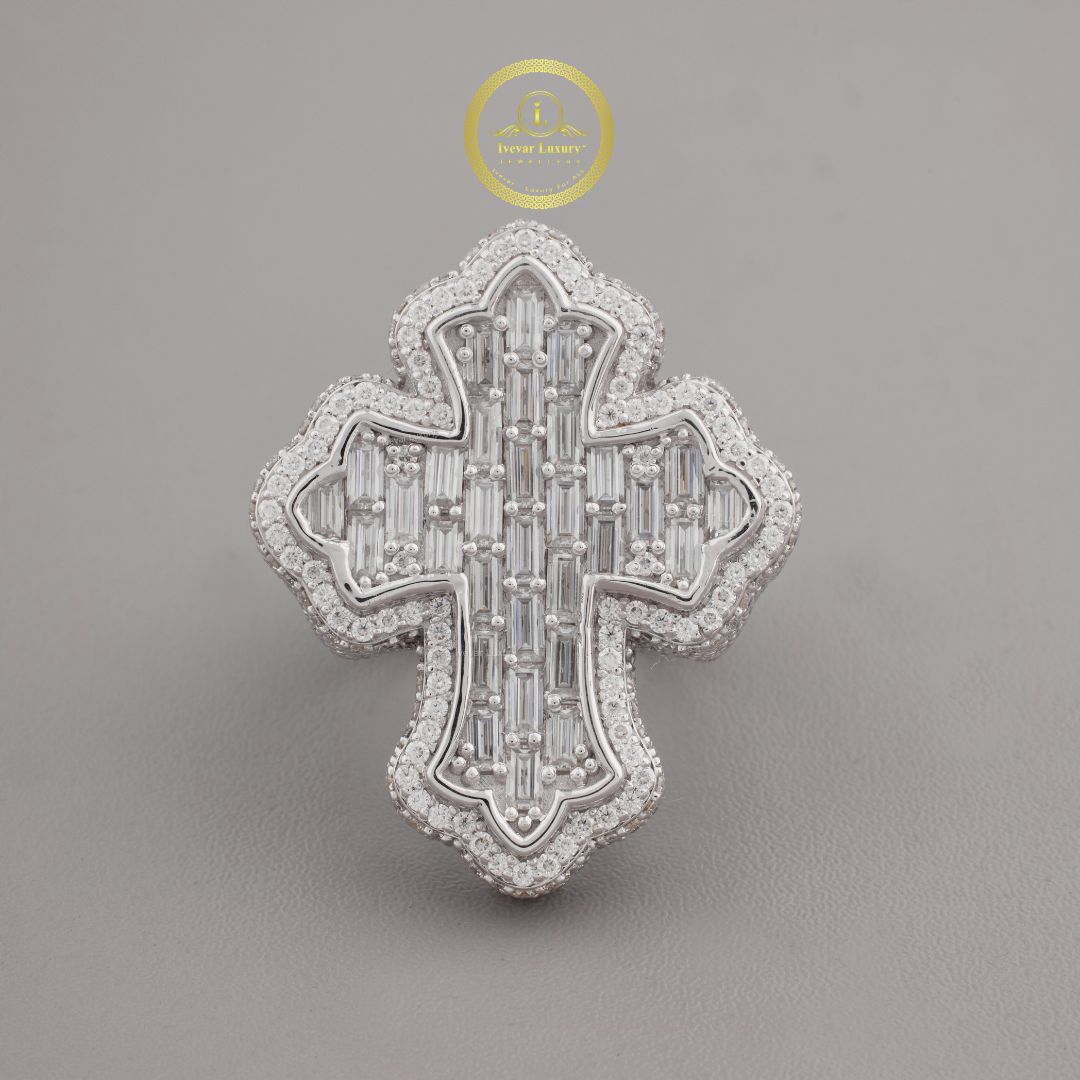 1.70 CT Intricately Crafted Baguette Lab Diamond Cross Pendant with Sparkling Pave Halo Detailing
