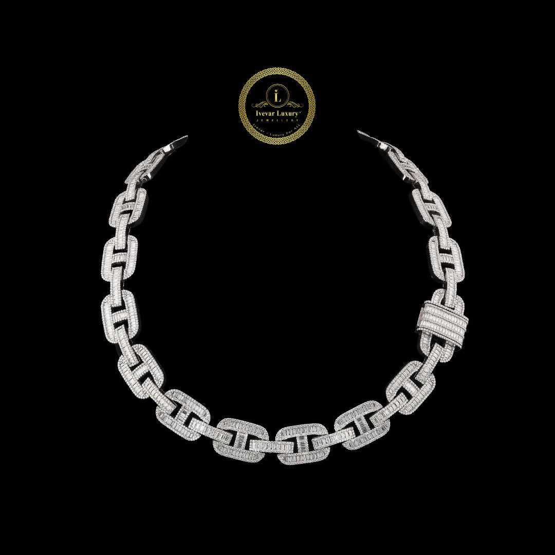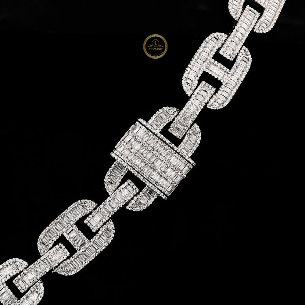 Moissanite, a stunning alternative to natural diamonds, offers exceptional fire and brilliance at a more accessible price. The chain typically features tightly interlocking links fully "iced out" with hand-set, high-clarity (often VVS) moissanite stones. Crafted in durable metals like sterling silver or gold-plated sterling silver, this chain delivers an eye-catching, premium look perfect for making a high-fashion impression.