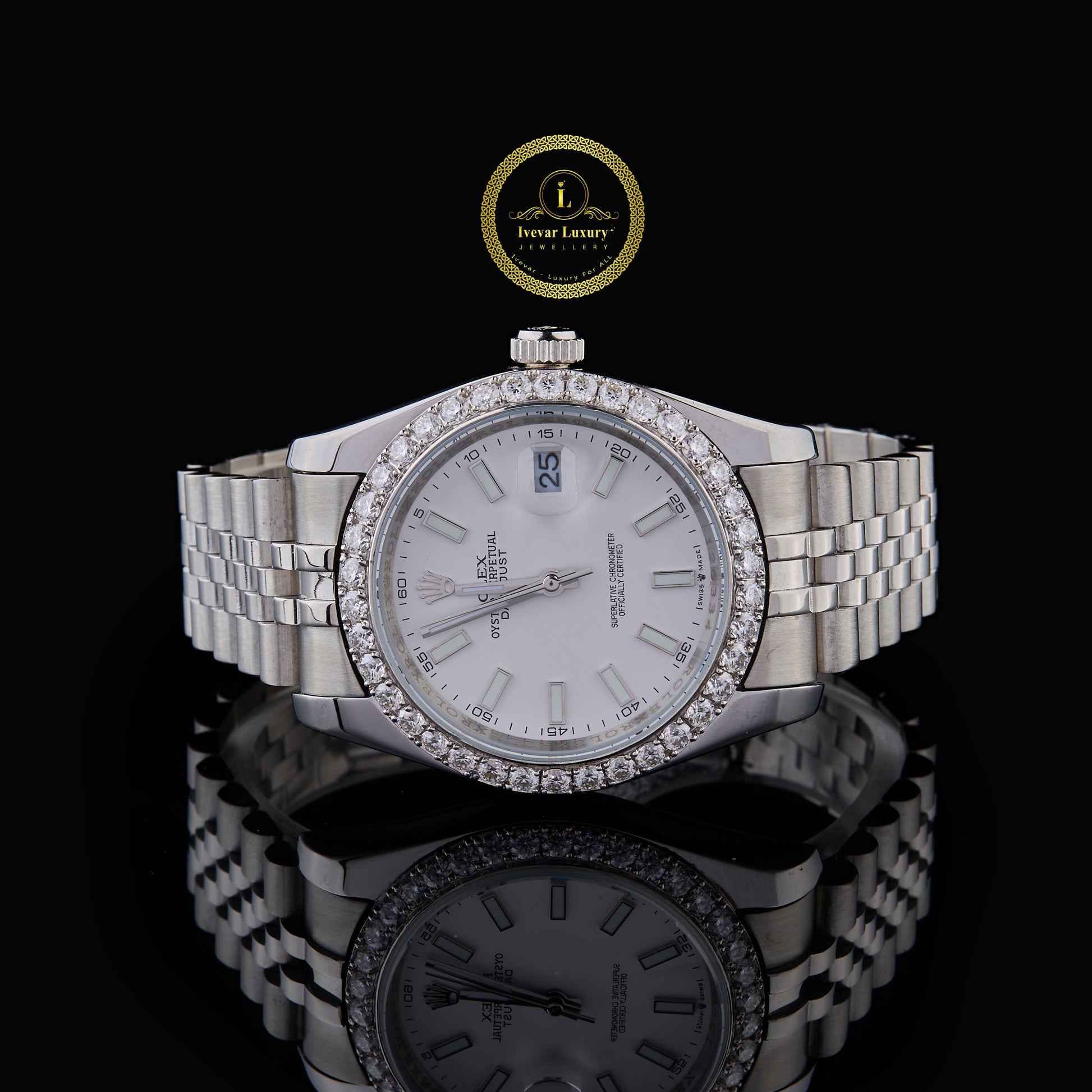 IVEVAR Date-Just Iced Out Watch - Dual Tone Moissanite Diamond Roman Dial Men's Watch