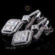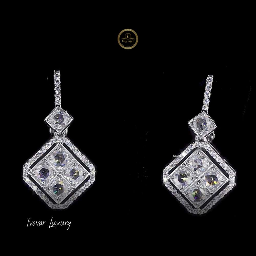 These stunning 14K white gold earrings showcase a sophisticated geometric design brought to life with natural rose-cut diamonds. Each earring features a beautifully arranged cluster of square rose-cut stones framed by a delicate diamond halo, creating a Round interplay of light and texture. The dangling silhouette adds graceful movement, enhancing the earrings’ brilliance from every angle. Crafted with meticulous precision, they blend modern elegance with a hint of vintage charm, making them perfect for both special occasions and elevated everyday wear. These earrings embody timeless luxury, exceptional craftsmanship, and the unmistakable sparkle of rose-cut natural diamonds.