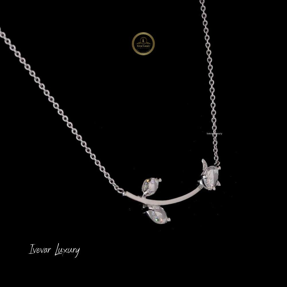 This delicate 14k white gold necklace features an enchanting nature-inspired design, showcasing a gracefully curved vine adorned with striking diamonds. The focal points are three marquise and oval-shaped rose-cut natural diamonds, whose distinct faceting creates a soft, translucent, and romantic glow, resembling dew drops on leaves. A tiny cluster of brilliant-cut diamonds near the larger stone adds an extra touch of sparkle. Suspended from a slender chain, this pendant offers an elegant, understated statement. Its artistic vine motif and vintage-style rose-cut diamonds make it a charming and unique piece, perfect for everyday wear or a subtle, sophisticated accent.