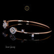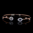 This contemporary bangle or cuff bracelet is elegantly rendered in 14K gold, appearing to be warm rose gold. It features a modern open design, showcasing a delicate yet striking arrangement of diamonds.