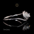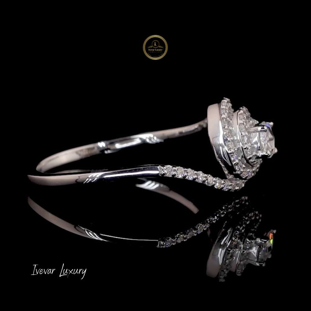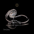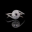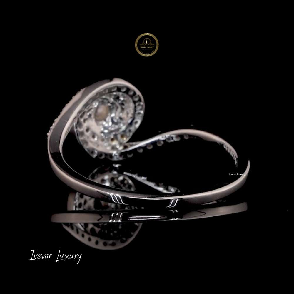 This stunning 14k white gold ring features a mesmerizing, modern swirl or spiral design. The focal point is a central, round rose-cut natural diamond, whose unique, flat-bottomed faceting provides a soft, vintage luminescence. The stone is encircled by a brilliant pavé diamond halo, from which two arms of the ring elegantly spiral outwards, completely encrusted with smaller brilliant-cut diamonds. The dynamic design and high-carat diamond setting create a powerful sense of movement and intense sparkle. This statement ring perfectly marries the romantic charm of the antique rose cut with a bold, contemporary setting.