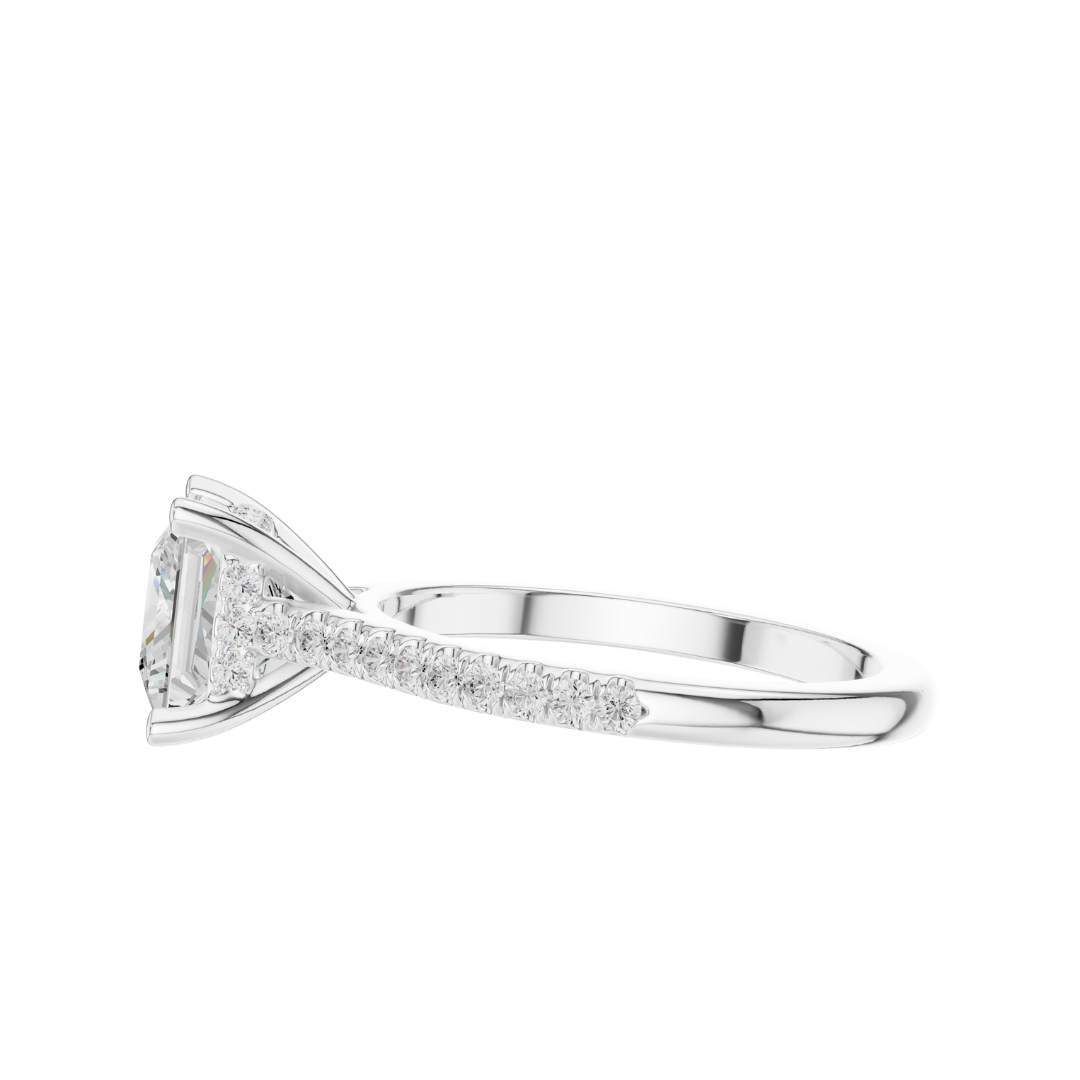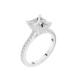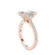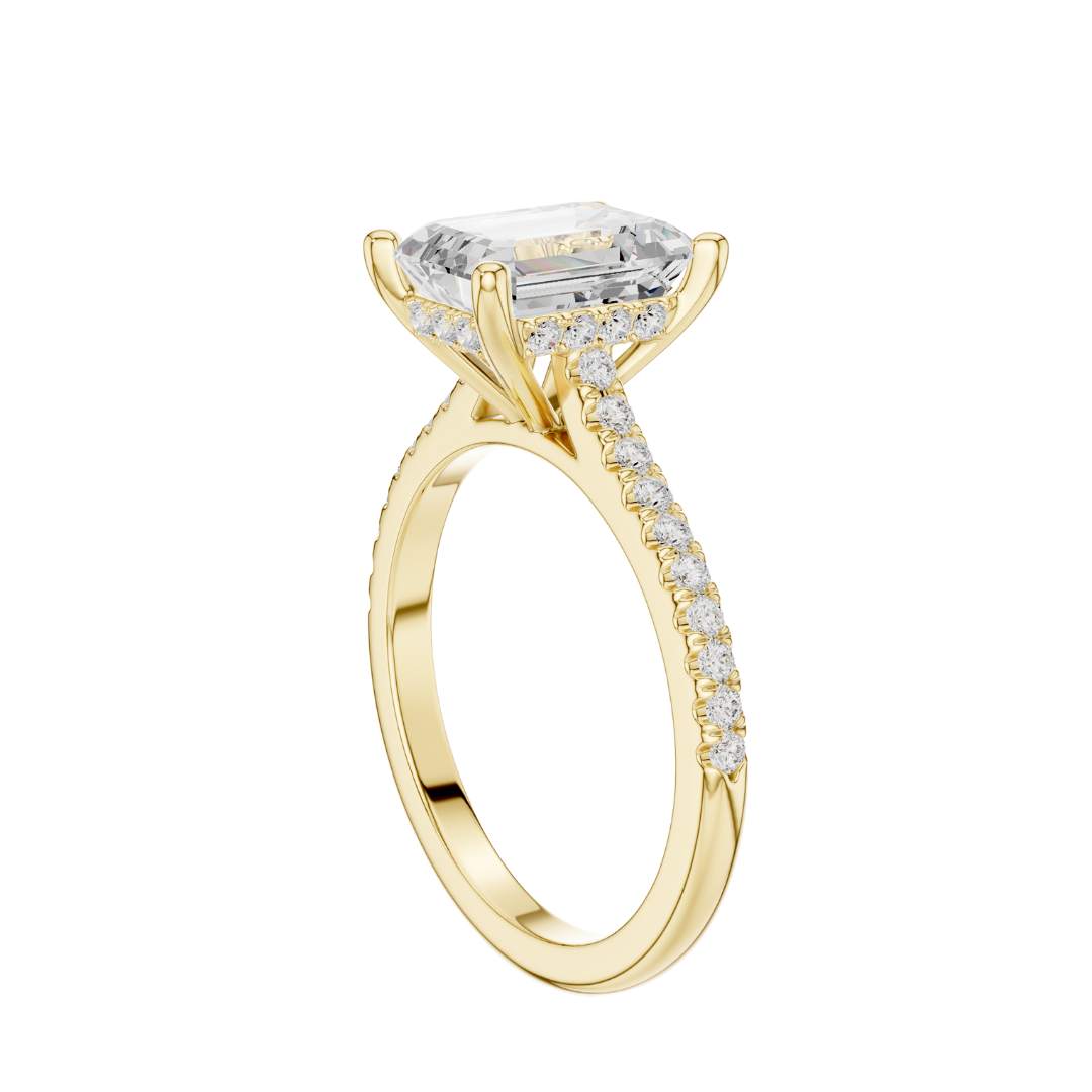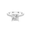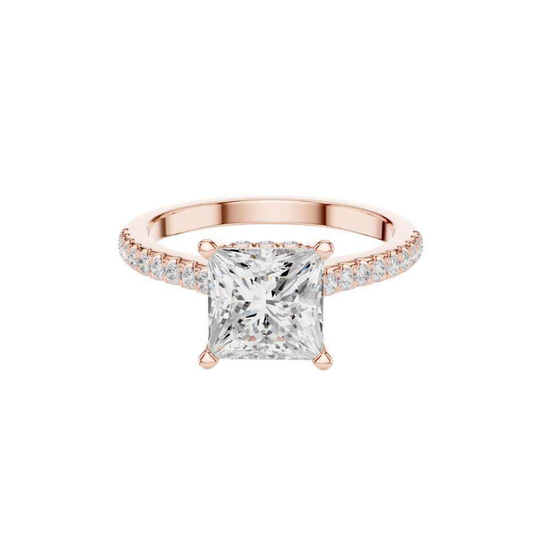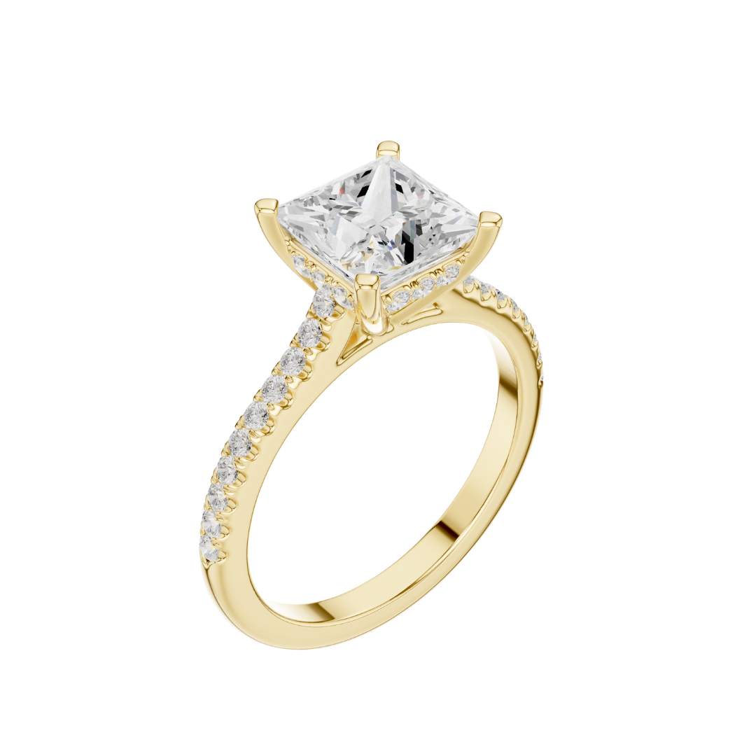 This elegant engagement ring showcases a breathtaking princess-cut center diamond set in a classic four-prong gold setting. The band is adorned with a row of sparkling pave-set diamonds, adding brilliance and sophistication without overwhelming the striking centerpiece. Combining modern geometry with timeless warmth, this ring offers a refined, luxurious look perfect for someone who appreciates both glamour and classic design.