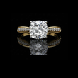 This elegant ring features a brilliant cushion-cut diamond as its centerpiece, held securely by four prongs for maximum light exposure and sparkle. The band is crafted from luxurious yellow gold, adorned with pavé-set diamonds that add extra radiance and sophistication. Perfect for someone who loves a blend of classic design and modern elegance, this ring delivers a stunning, timeless look.