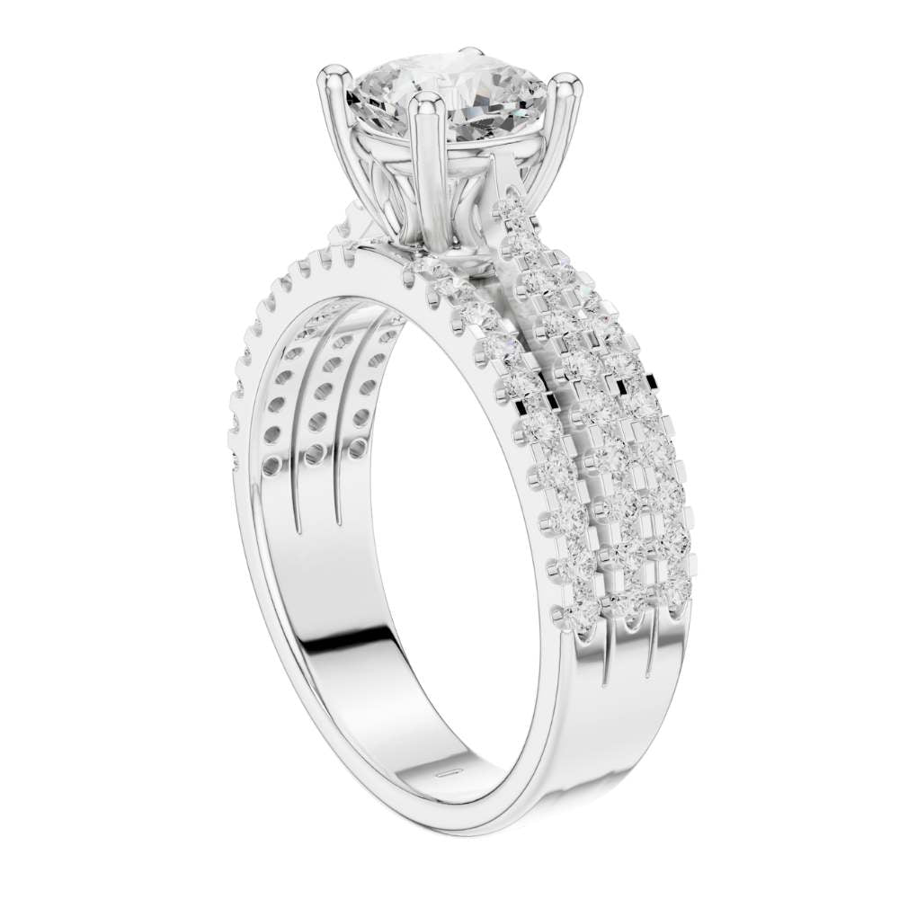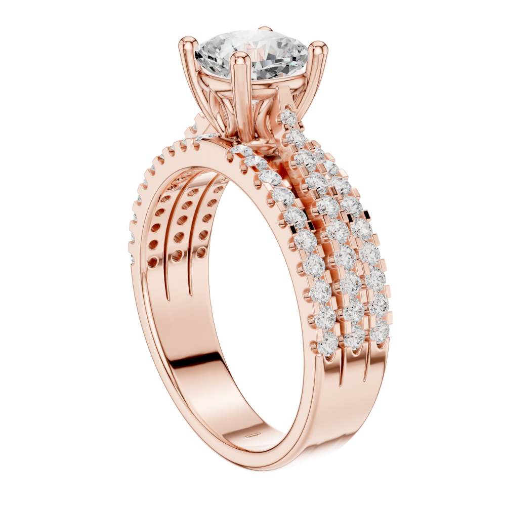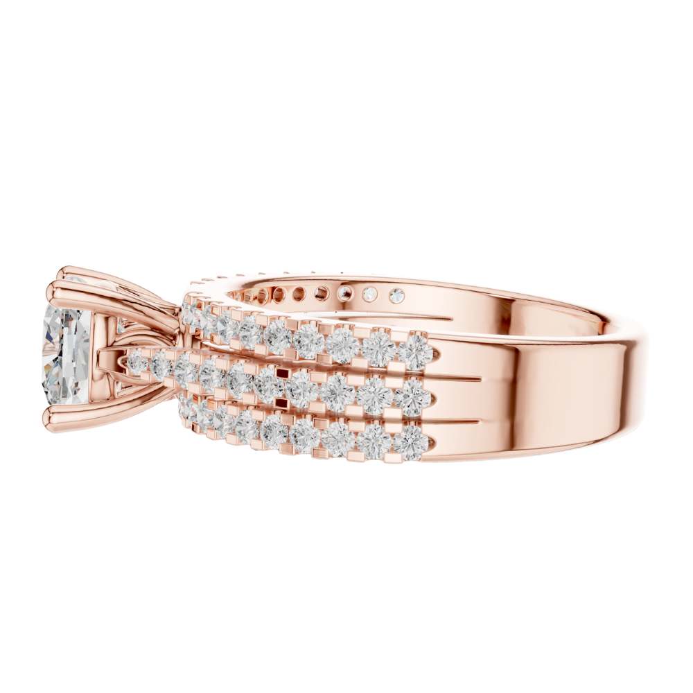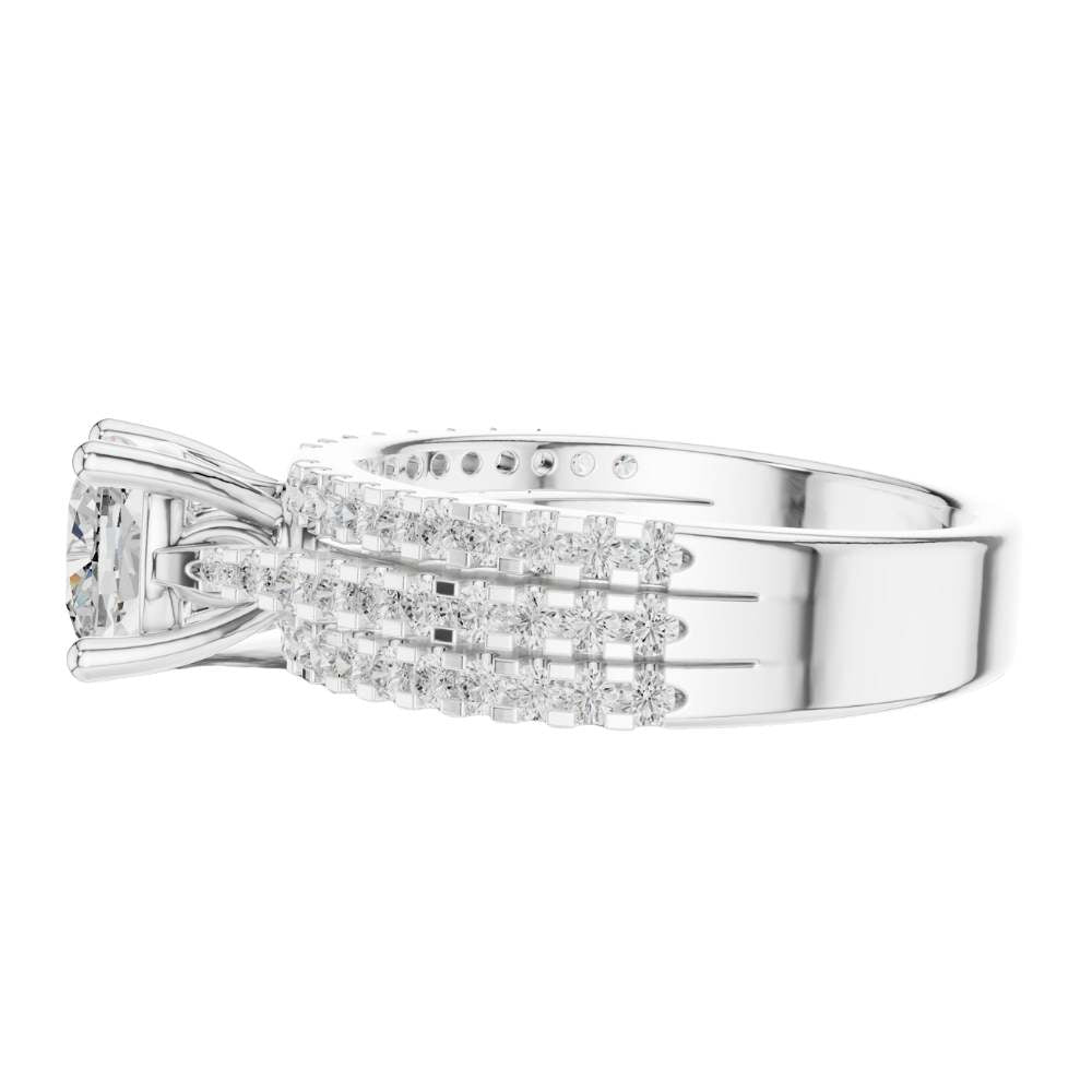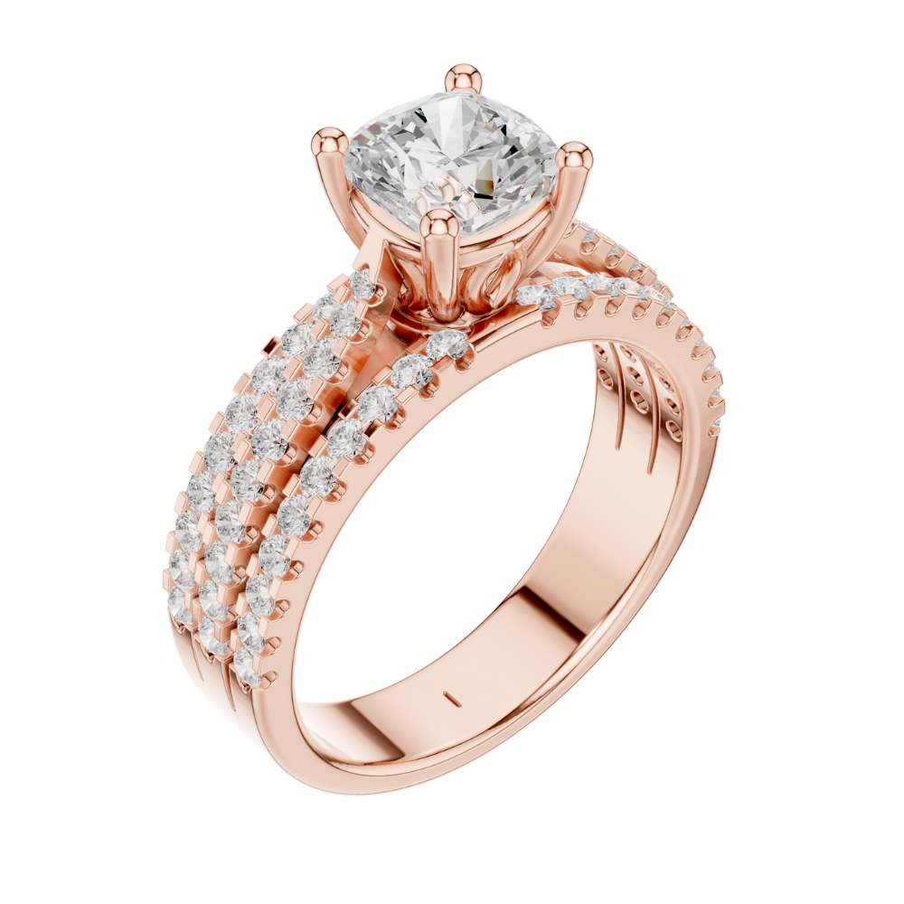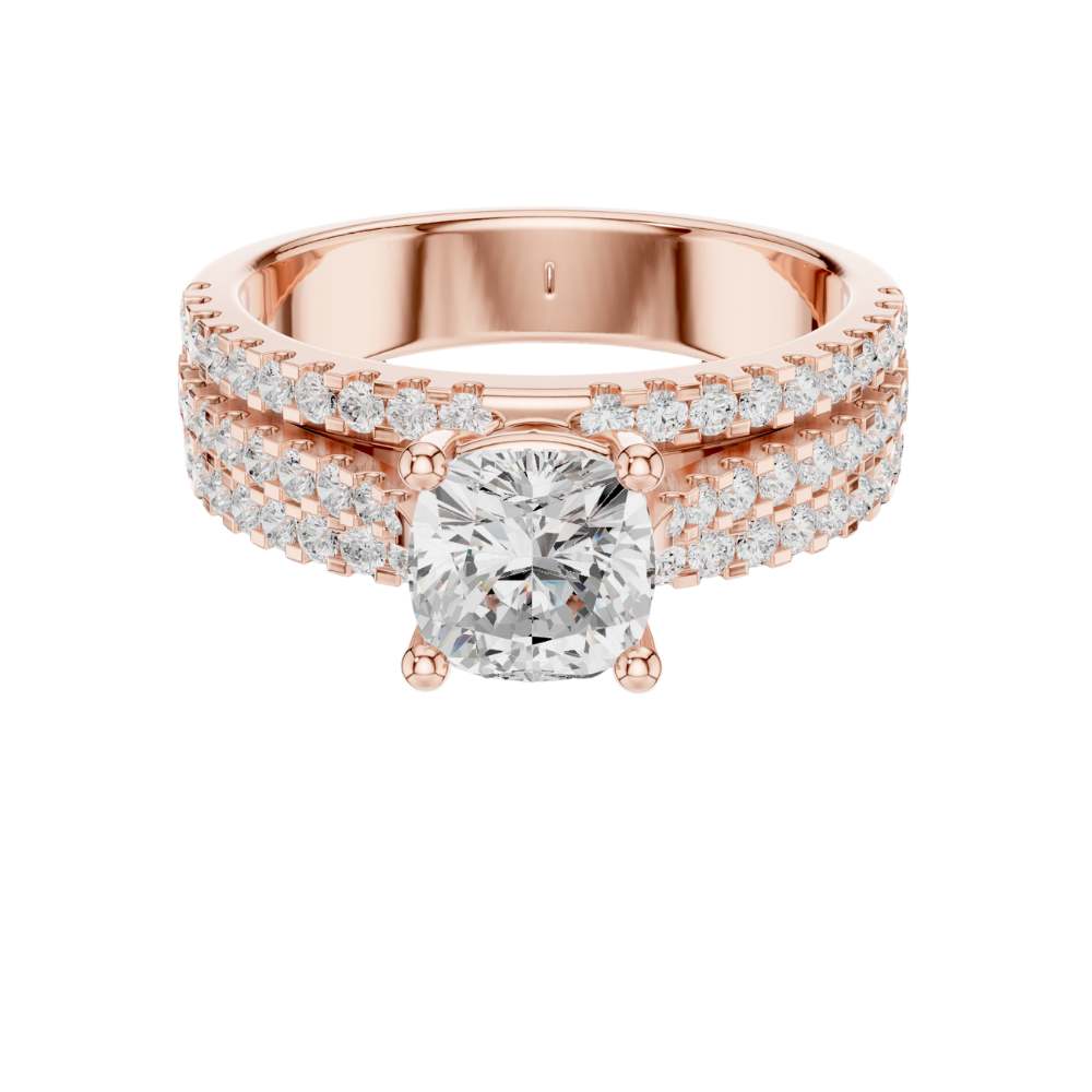 Triple Row Pave Cushion Cut Ring
