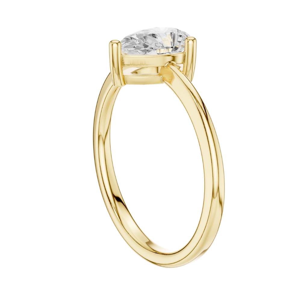 This stunning engagement ring features a brilliantly faceted pear-shaped diamond set in a minimalist three-prong solitaire design, allowing maximum light to enhance its sparkle. The warm gold band adds timeless sophistication, perfectly balancing modern elegance with classic charm. Ideal for someone who loves a refined yet eye-catching style, this ring makes a graceful statement of enduring love by Ivevar.