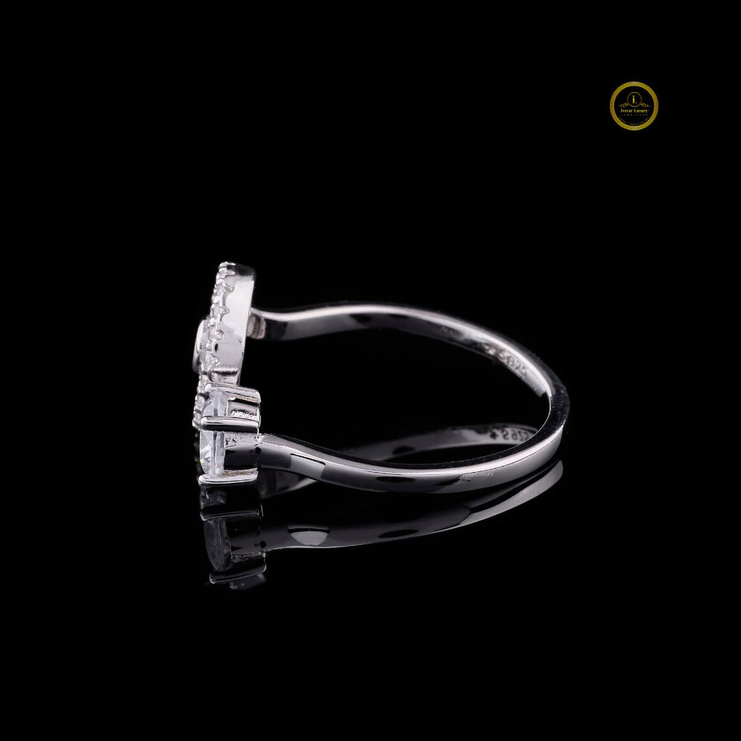 This striking ring features a contemporary open-band design showcasing a brilliant round halo-set diamond cluster on one side and a dazzling solitaire stone on the other. Crafted in sleek , the dual-element styling creates a perfect balance of modern elegance and timeless sparkle. The halo arrangement enhances the center stone’s radiance, while the solitaire adds a bold touch of classic brilliance. Ideal for special occasions or everyday luxury, this piece is the perfect blend of sophistication, uniqueness, and high-end craftsmanship.