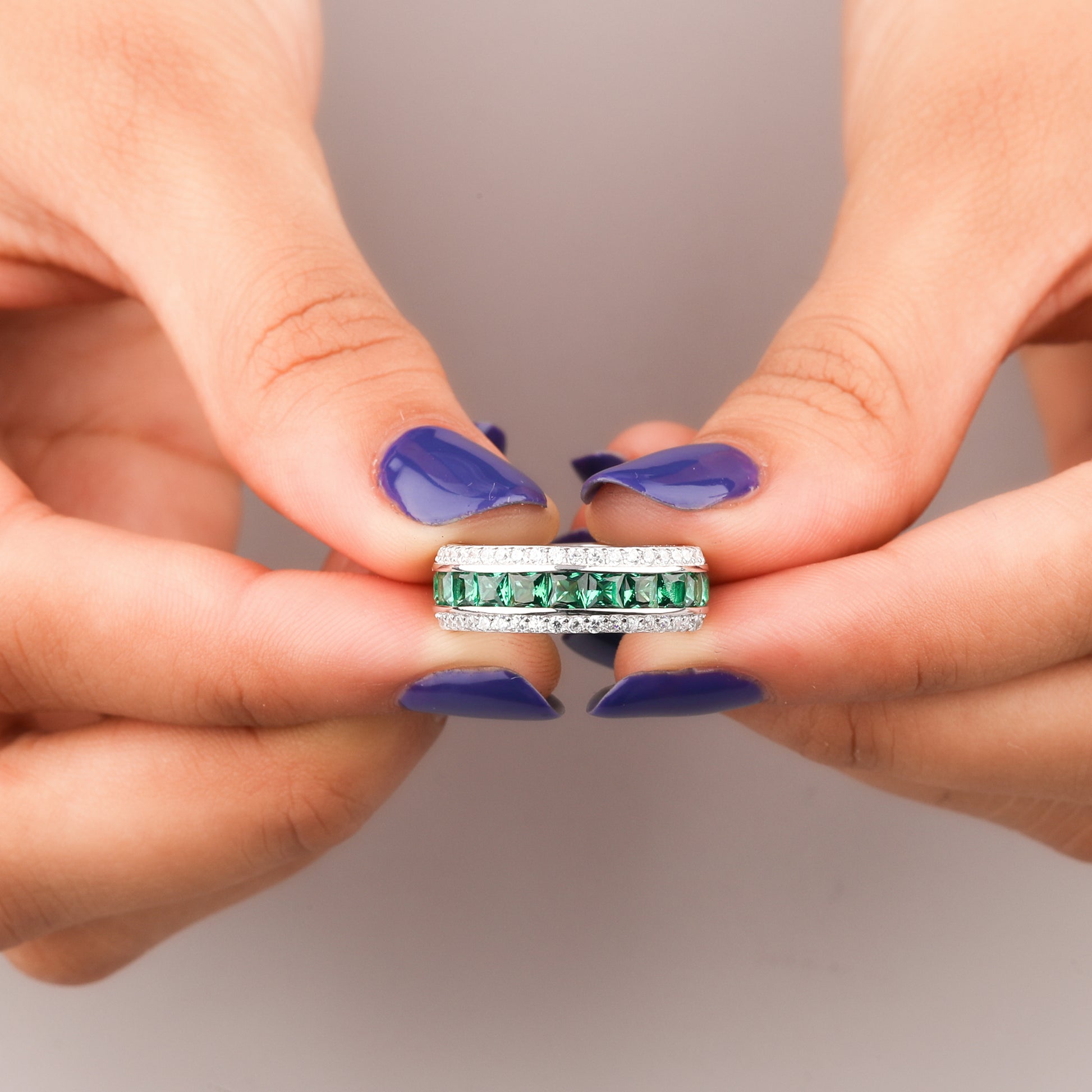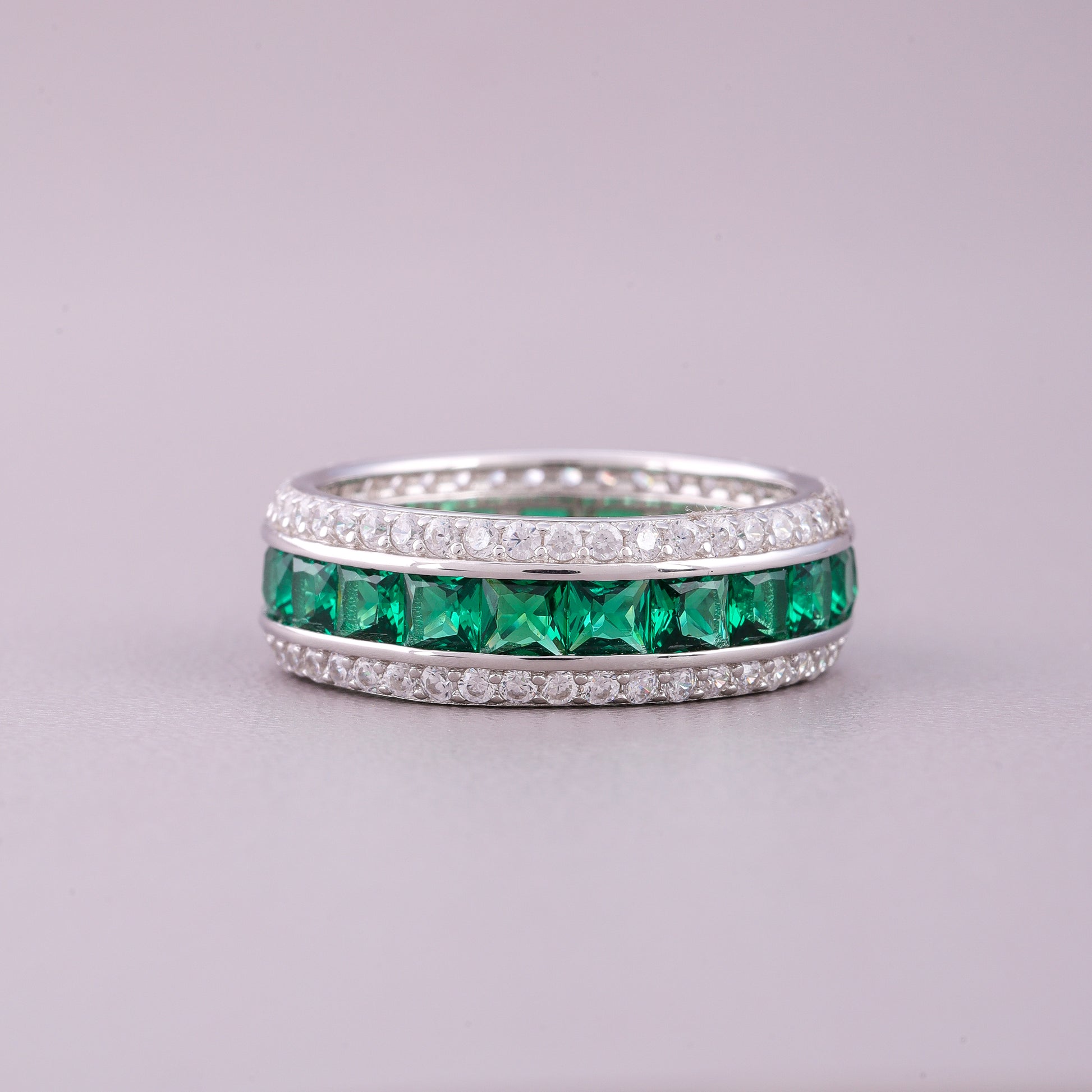 The side stones are typically princess-cut diamonds, known for their sleek, geometric, and Art Deco-inspired look. These diamonds are often set to either side of the central sapphire, emphasizing its color and adding linear sparkle. The design balances the classic elegance of a large colored gemstone with the sophisticated brilliance of precise diamond accents, making it a timeless statement piece.