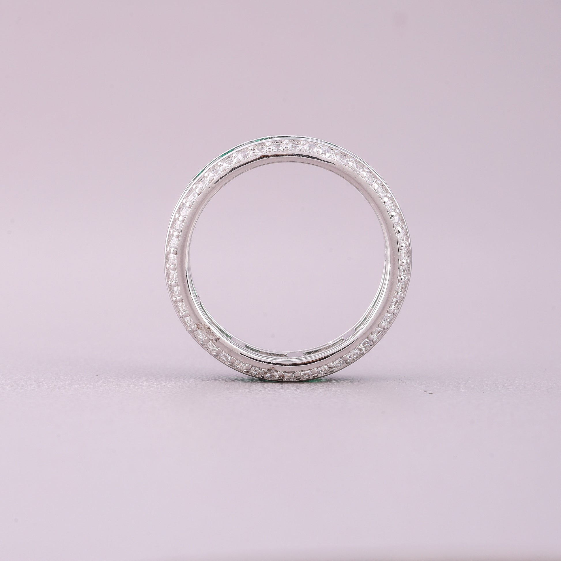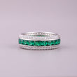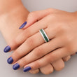 This exquisite ring features a prominent natural green sapphire at its center, flanked by bright, contrasting diamonds. The sapphire, likely cut into a rectangular or step-cut shape like an emerald or baguette cut, exhibits a rich, deep blue hue, symbolizing nobility and truth.