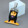 This is a striking, contemporary rendition of the classic Jesus piece pendant. The design features the head of Jesus, primarily crafted using painted enamel or resin to give it a realistic, sculptural feel with black hair, a beard, and a flesh-tone complexion.
