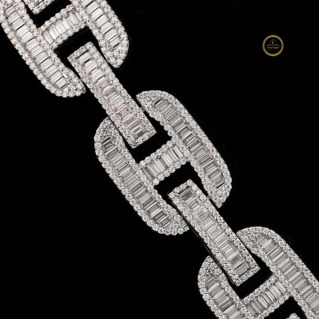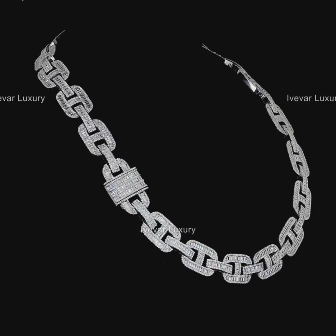 The chain's entire surface is covered in brilliant-cut and possibly baguette-cut lab grown diamonds, providing edge-to-edge sparkle and a massive presence. The use of lab grown diamonds allows for this high-carat, full-pave coverage to be achieved sustainably and at a better value. The robust look and heavy icing make this an ultimate statement necklace, perfectly suited for luxury streetwear and red-carpet events.